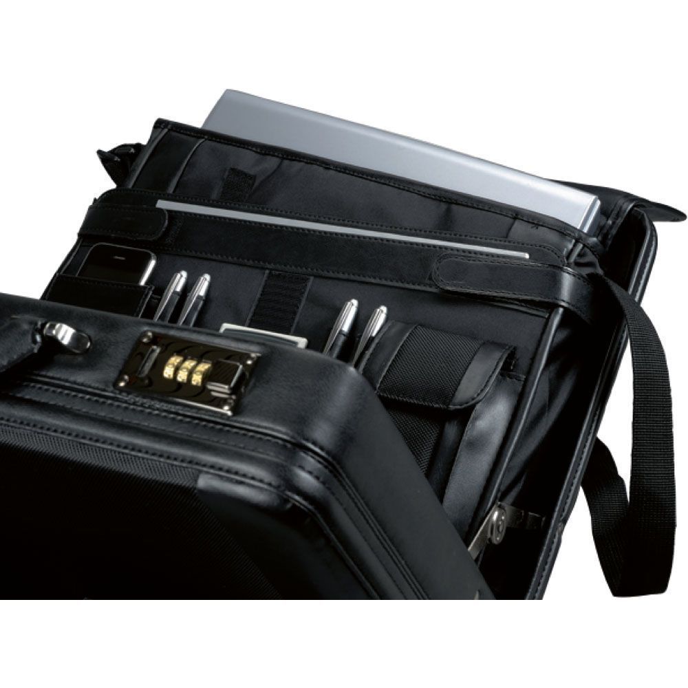 Dehnfalte, zwei Zahlenkombinationsschlösser. Innen: Herausnehmbare Laptoptasche