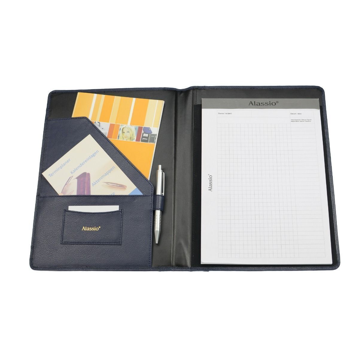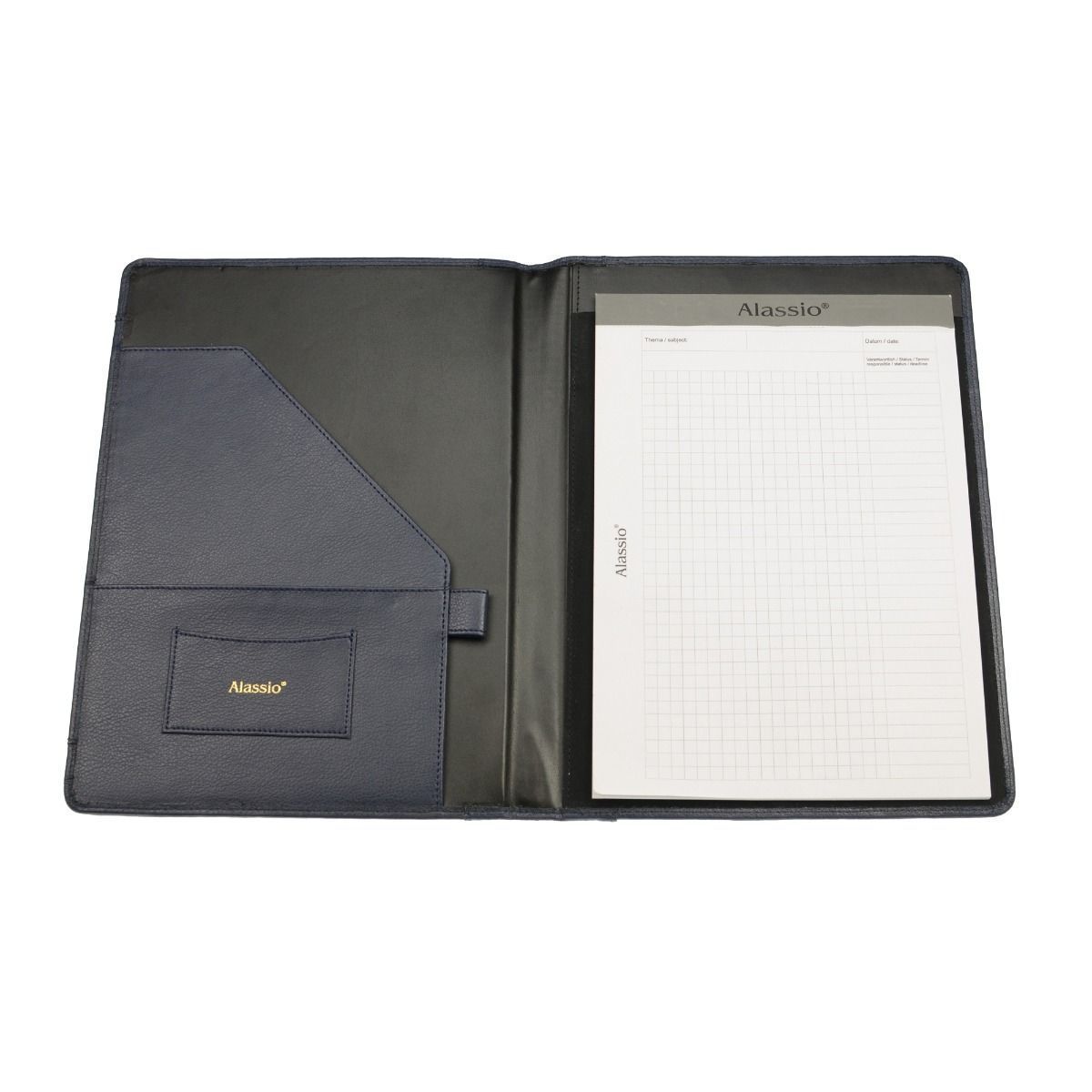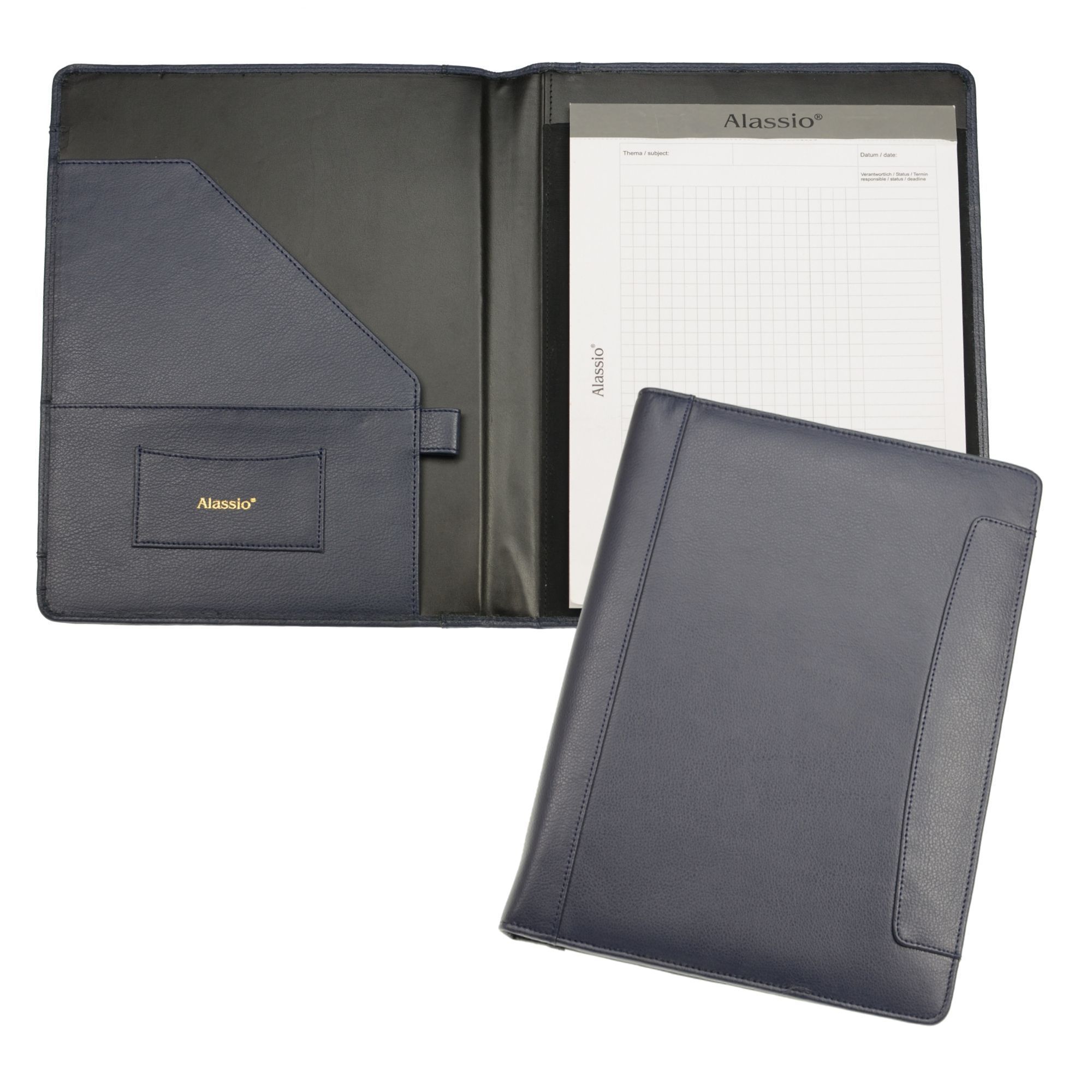 Alassio Alassio Schreibmappe A4 Petio Konferenz Akten Mappe Echt Leder dunkelblau 39092