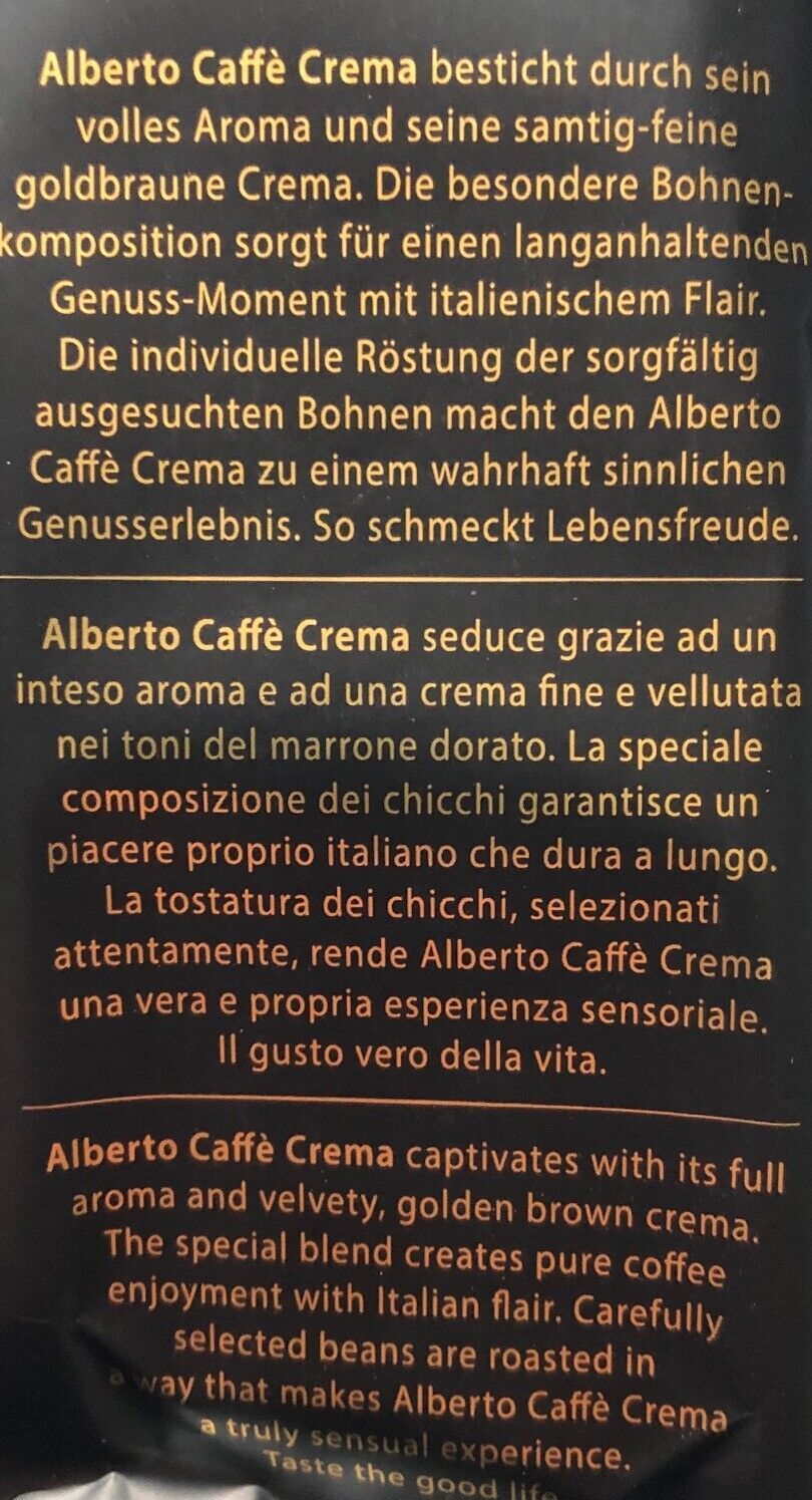 • Alberto Caffe Crema ganze Bohnen samtig feine Röstmischung 1000g