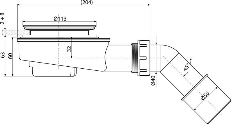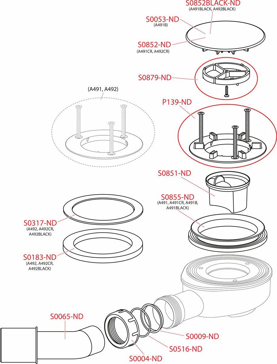 Alcadrain A491 Ablaufgarnitur für die Duschwannen, reduzierte Höhe, Ablauf 90 mm, DN