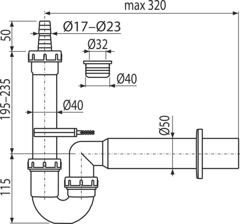 Alcadrain APS7-DN50 Röhrengeruchverschluss für die Waschgeräte DN50