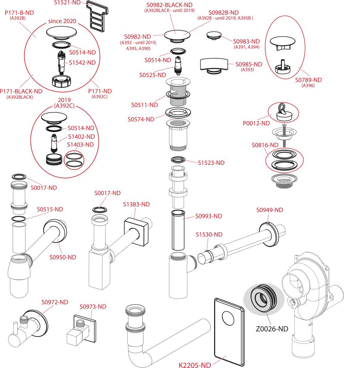 AlcaDrain Design Siphon 1 1/4" rund, Ganzmetall Gold matt gebürstet