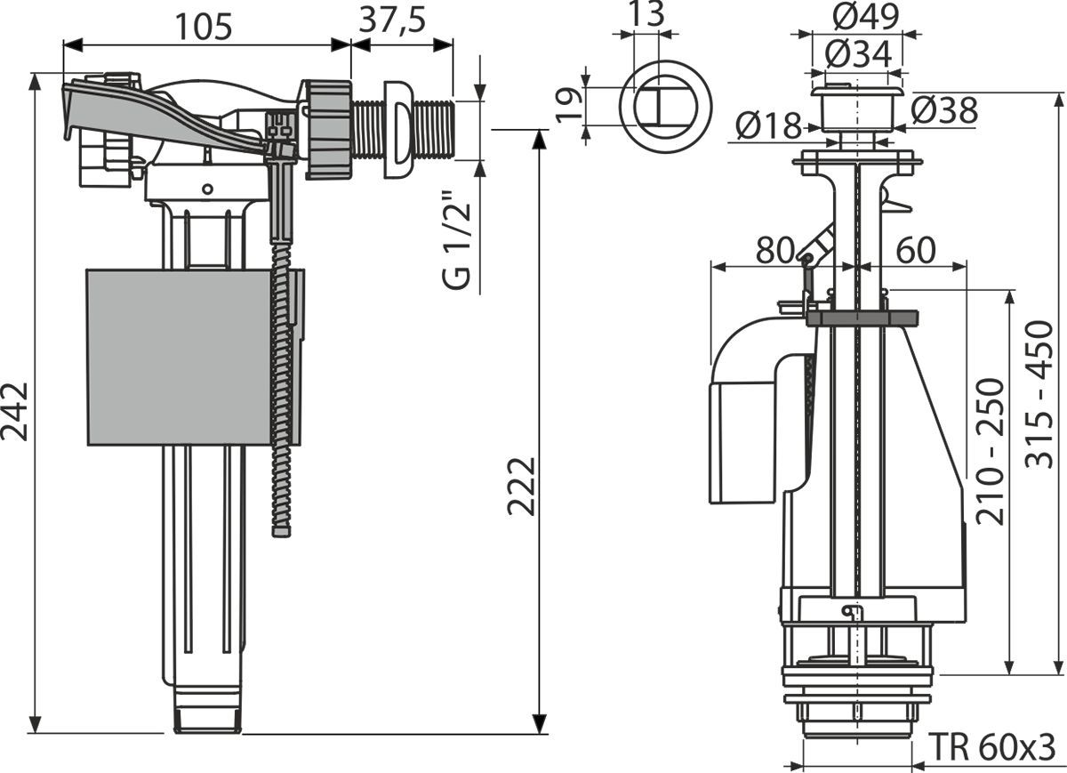 Alcadrain Spülgarnitur mit Doppeltaste SA08AK 1/2" CHROM