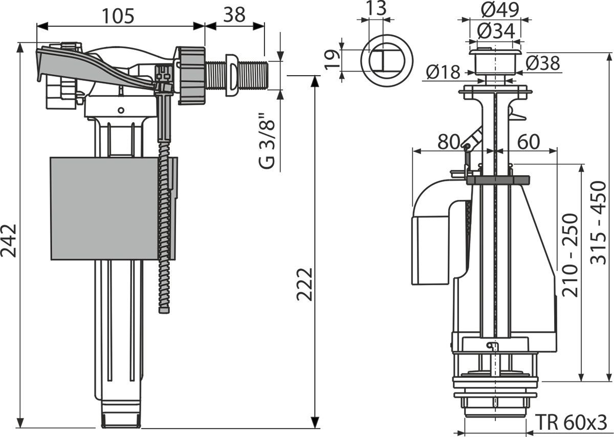 Alcadrain Spülgarnitur mit Doppeltaste SA08AK 3/8" CHROM