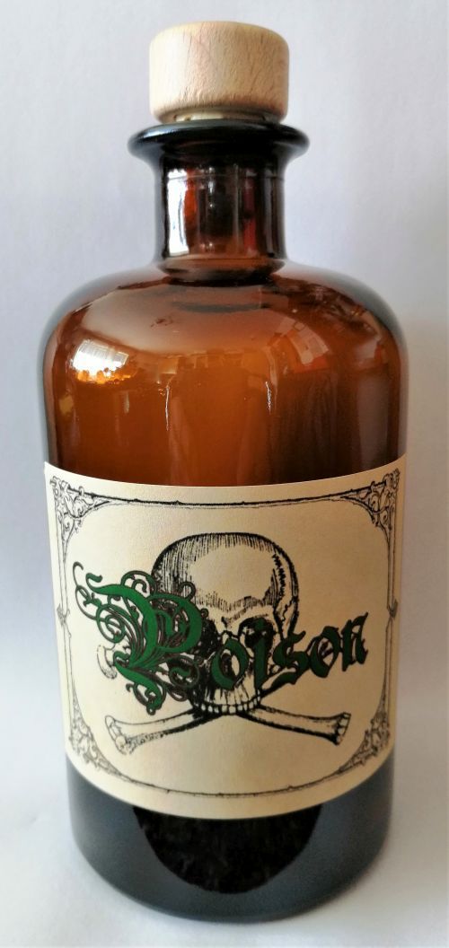 Alchemisten Flasche POISON mit Totenkopf Braunglasflasche 500 ml ohne Inhalt