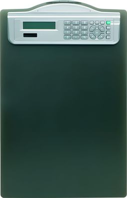 • Klemmbrett mit Solarrechner, DIN A4, Schwarz, transparenter Kunststoff, Längsseite mi