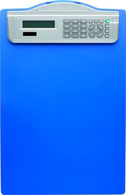 • Klemmbrett mit Solarrechner, DIN A4, Blau, transparenter Kunststoff, Längsseite mit M
