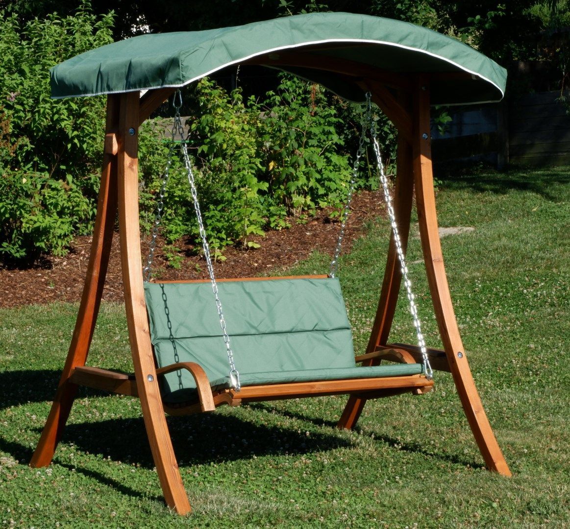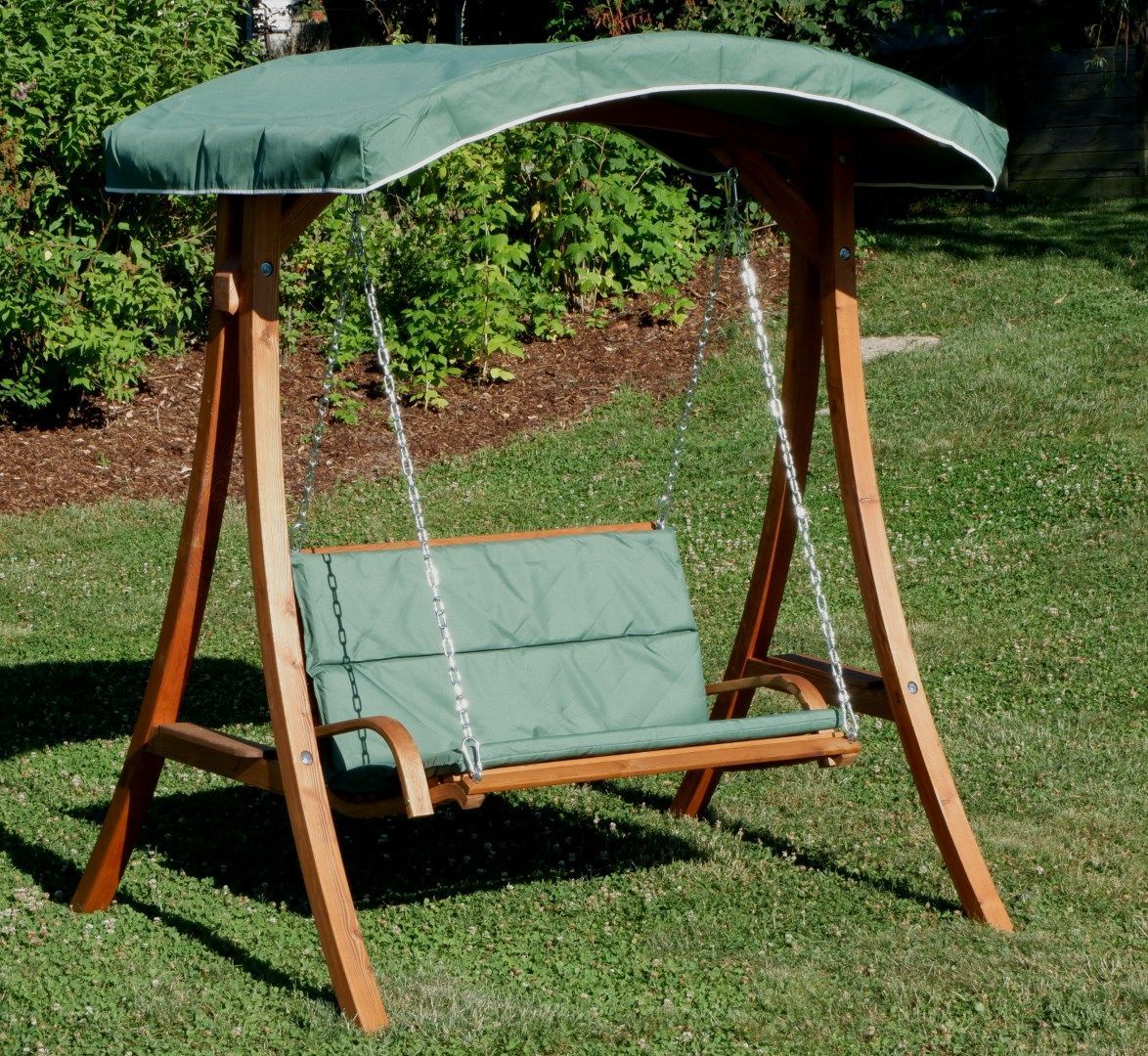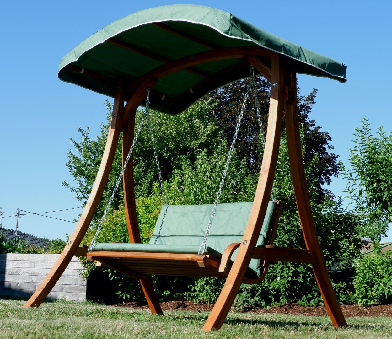 ALEOS. Hollywoodschaukel Gartenschaukel RIO GRÜN Holz Lärche mit Dach abnehmbar