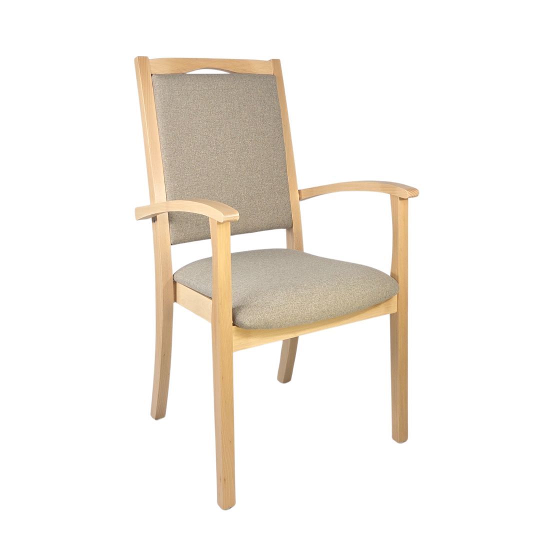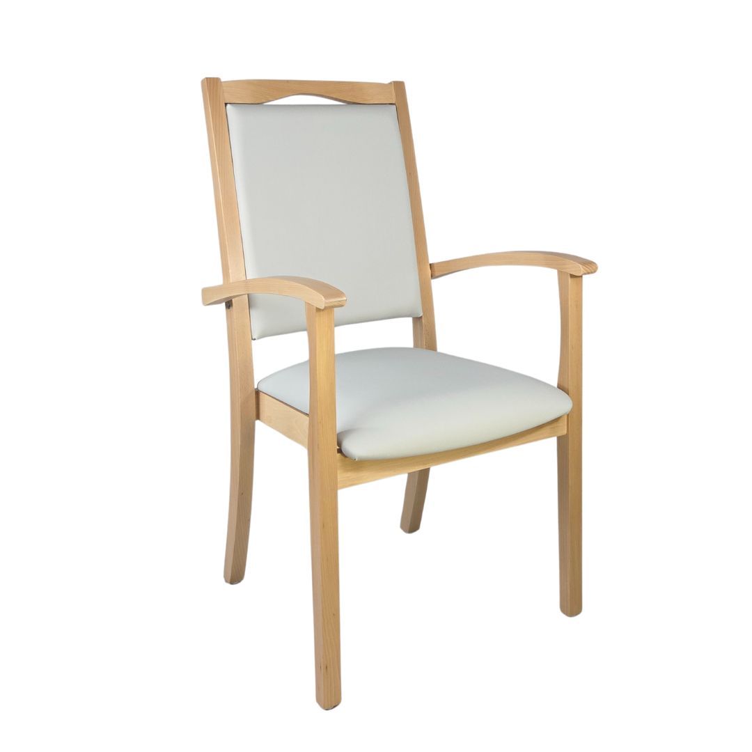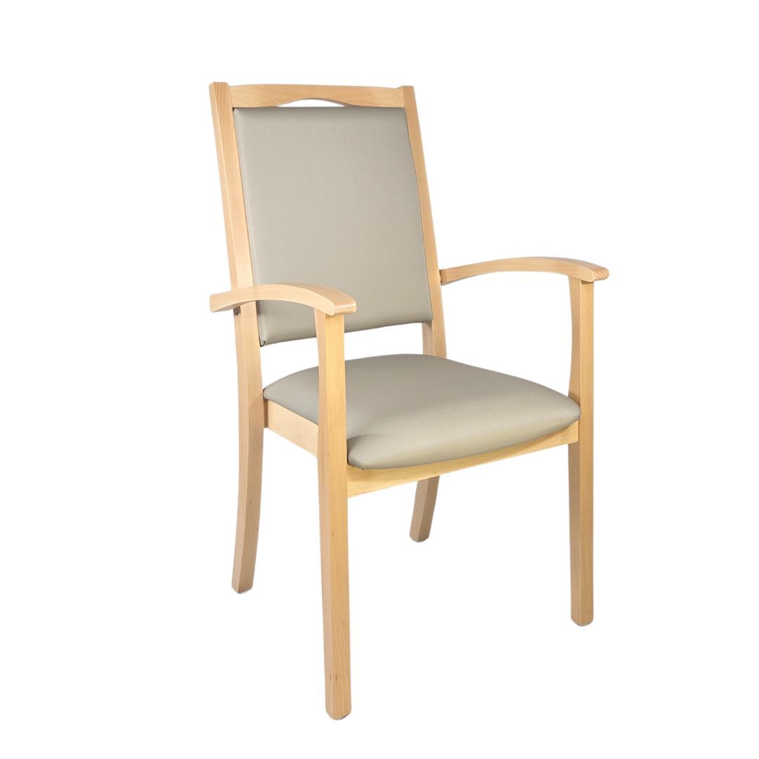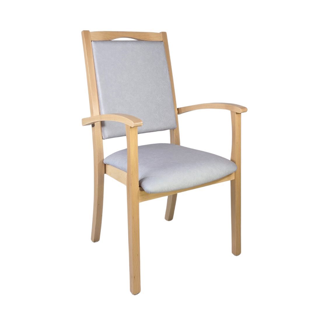 Alexander Hochlehner – Sitzen mit System und KomfortDer Stuhl Alexander Hochlehner ist die perfekte Kombination aus durchdachter Funktionalität und zeitlosem Design. Entwickelt für den intensiven Alltag in Pflegeeinrichtungen, Arztpraxen oder betreuten Wohnformen, erfüllt er ebenso zuverlässig die Anforderungen in privaten Haushalten.Dank seiner hochgezogenen Rückenlehne, den stabilen Armlehnen mit gerundeten Griffen und der angenehm gepolsterten Sitzfläche bietet er genau die Unterstützung, die