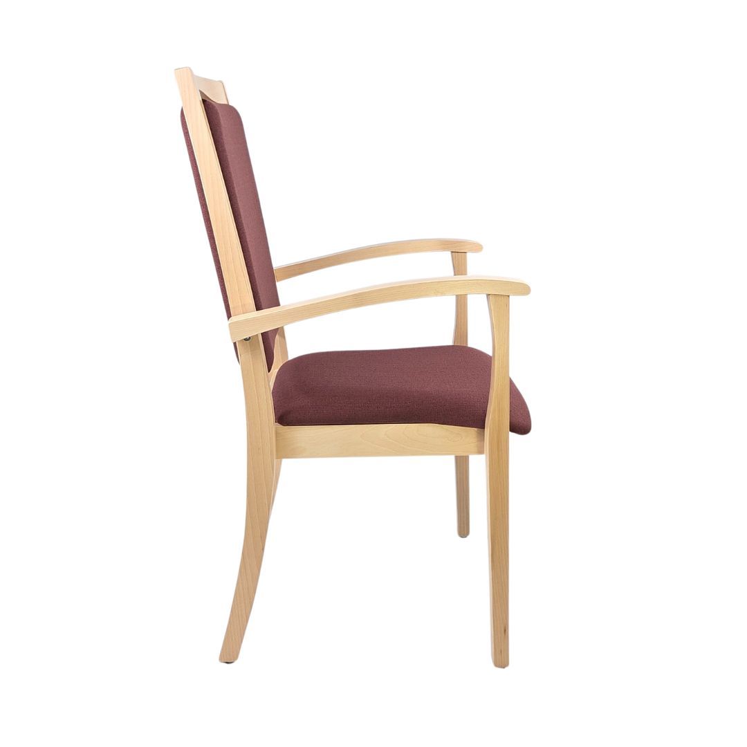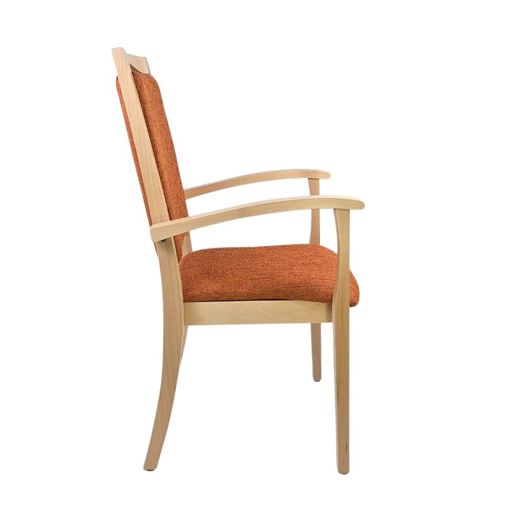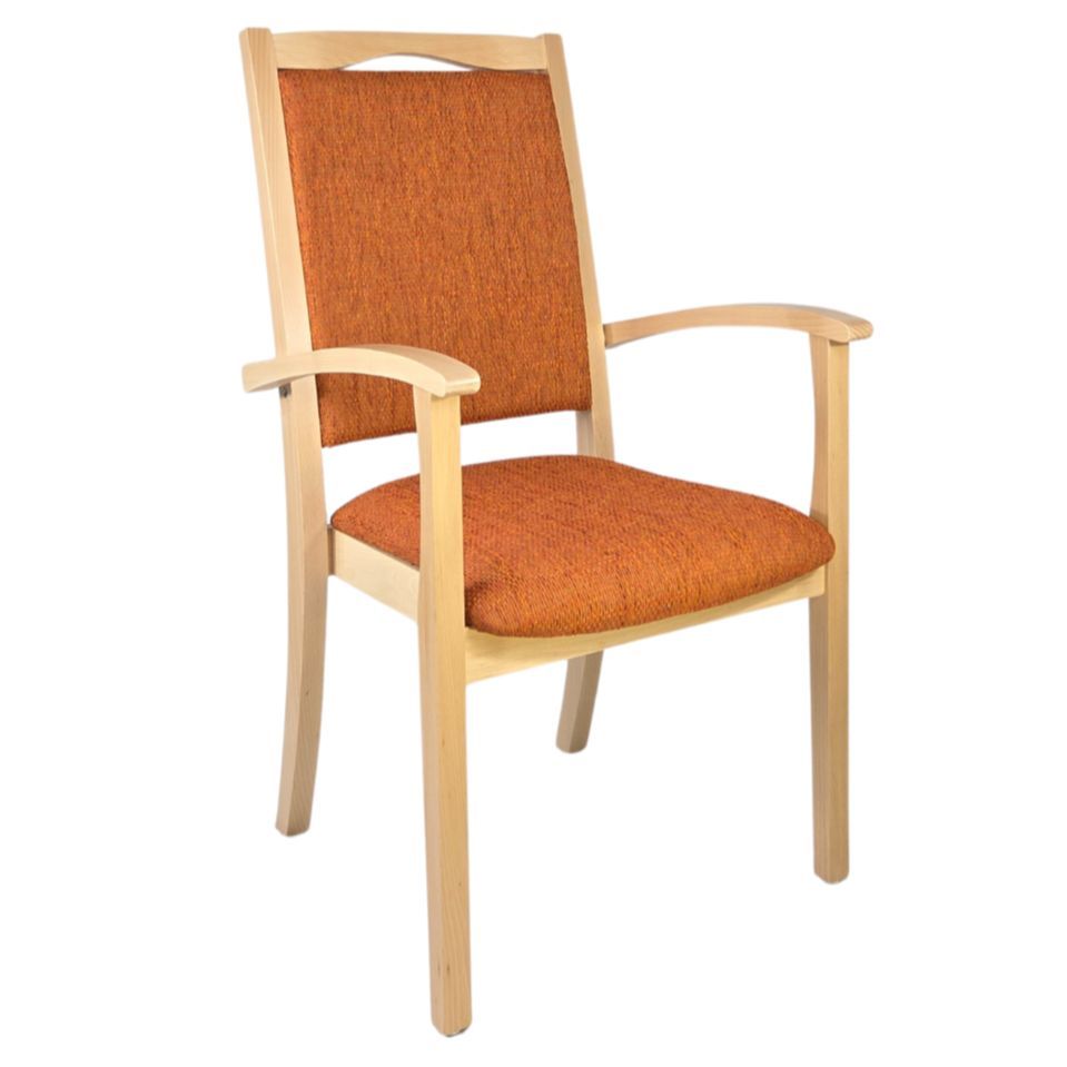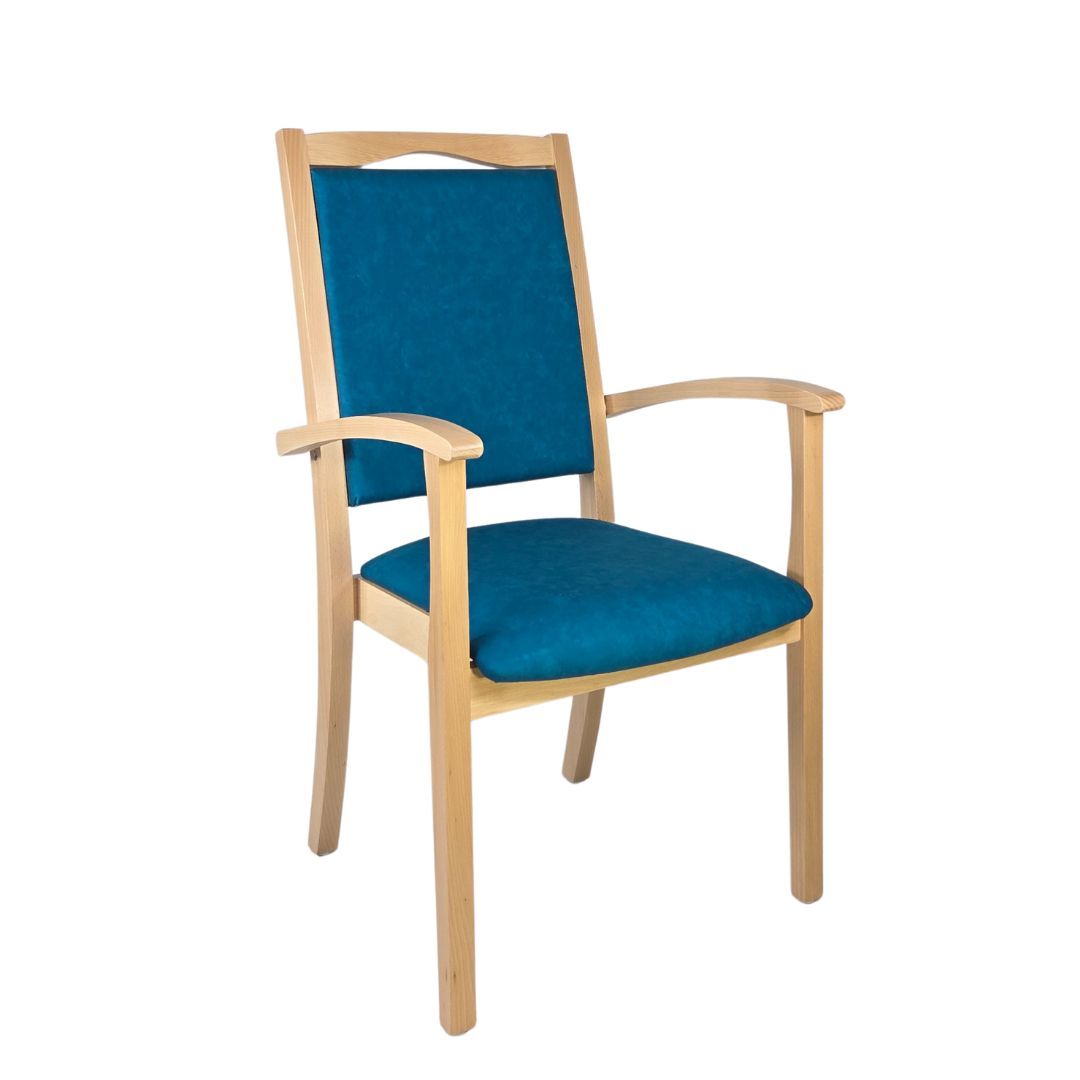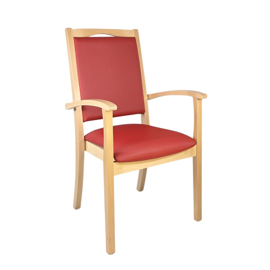 Alexander Hochlehner – Sitzen mit System und KomfortDer Stuhl Alexander Hochlehner ist die perfekte Kombination aus durchdachter Funktionalität und zeitlosem Design. Entwickelt für den intensiven Alltag in Pflegeeinrichtungen, Arztpraxen oder betreuten Wohnformen, erfüllt er ebenso zuverlässig die Anforderungen in privaten Haushalten.Dank seiner hochgezogenen Rückenlehne, den stabilen Armlehnen mit gerundeten Griffen und der angenehm gepolsterten Sitzfläche bietet er genau die Unterstützung, die
