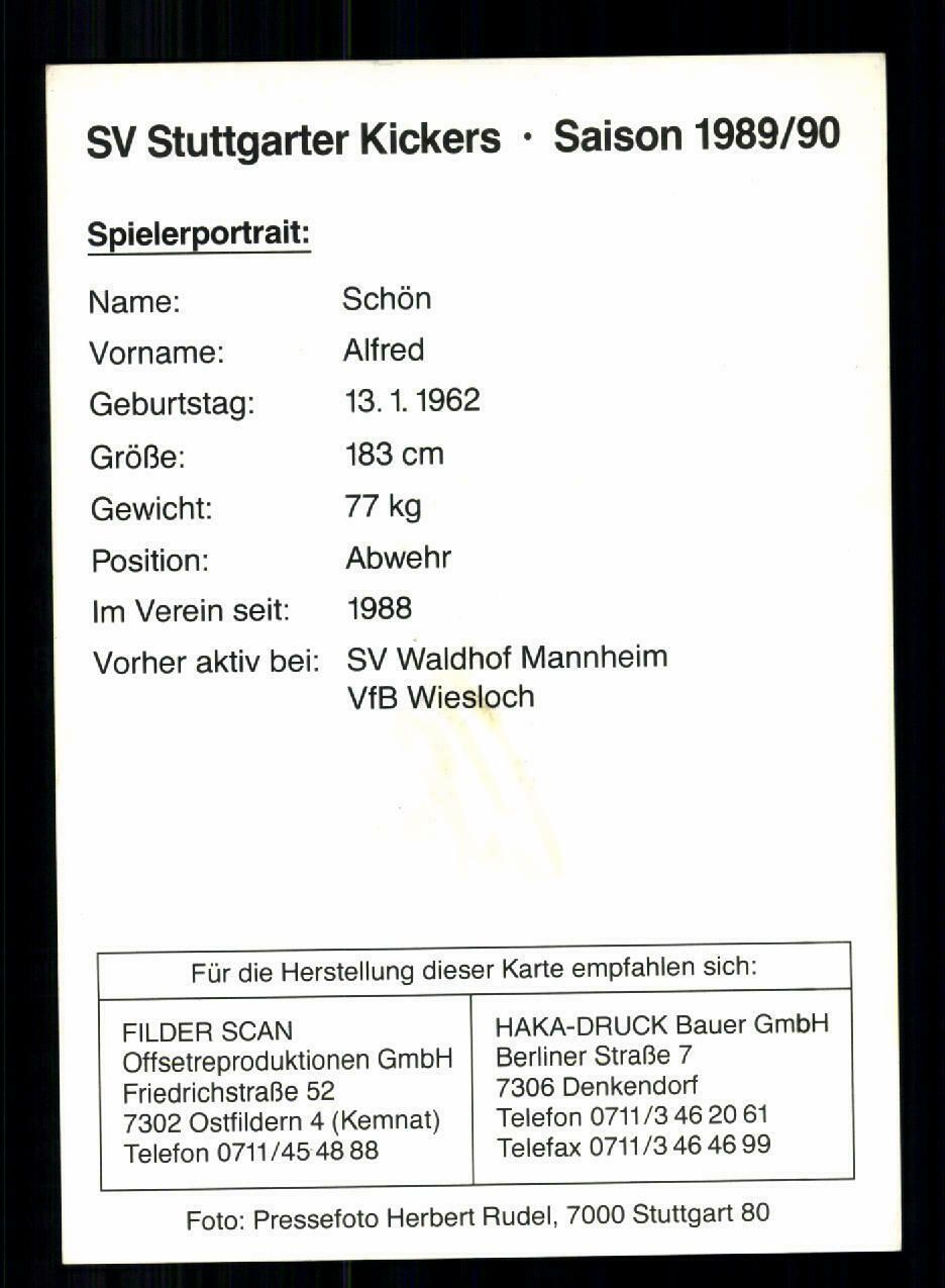 Alfred Schön Autogrammkarte Stuttgarter Kickers 1989-90 Original Signiert