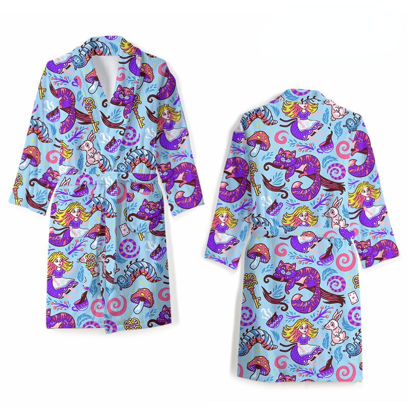 Alice in Wonderland Robe Merch Alice March Hare RedQueen Nachthemd Flanell Homewear
