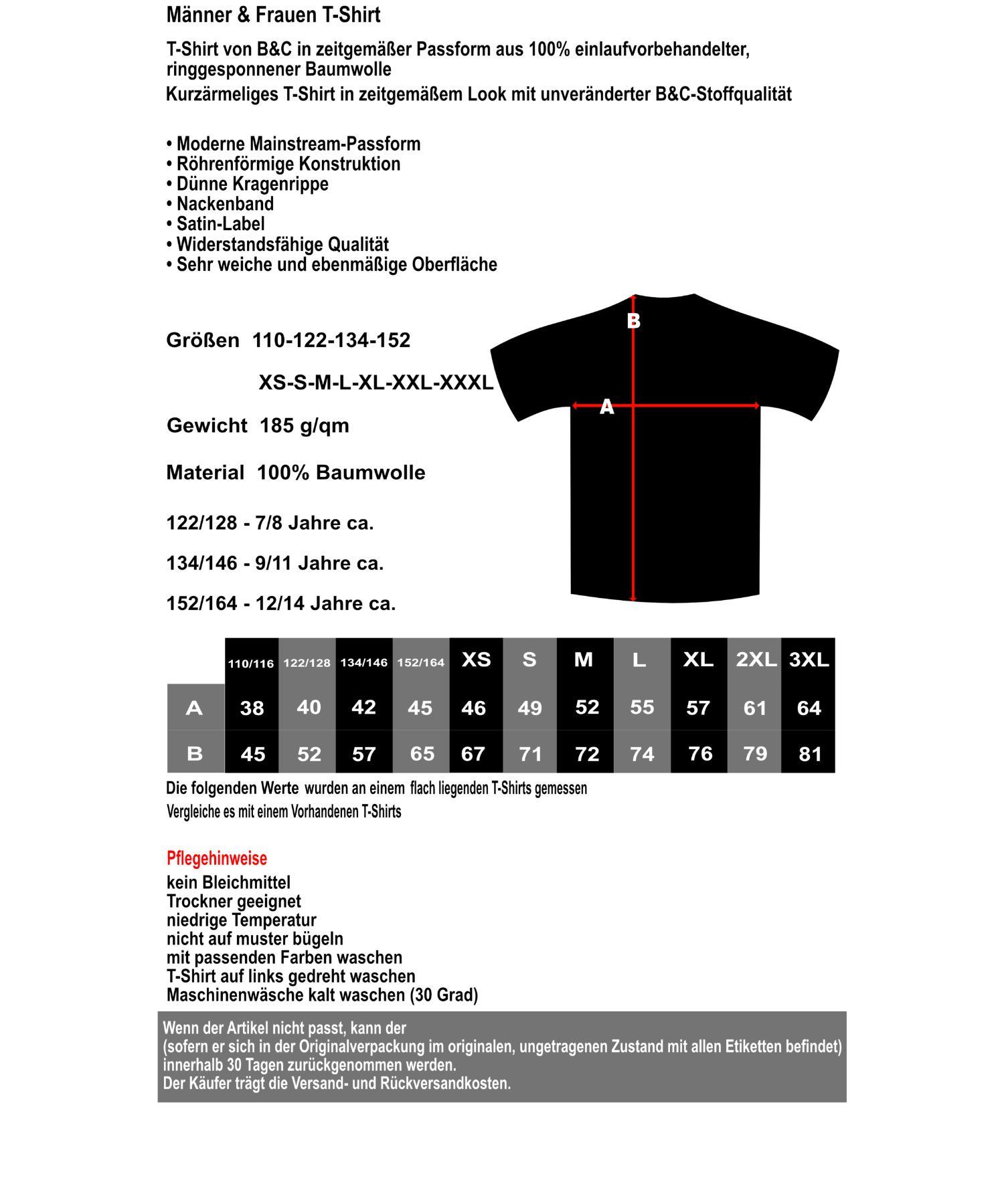 110/116, 122/128, 134/146, 152/164, XS, S, M, L, XL, 2XL und 3XL