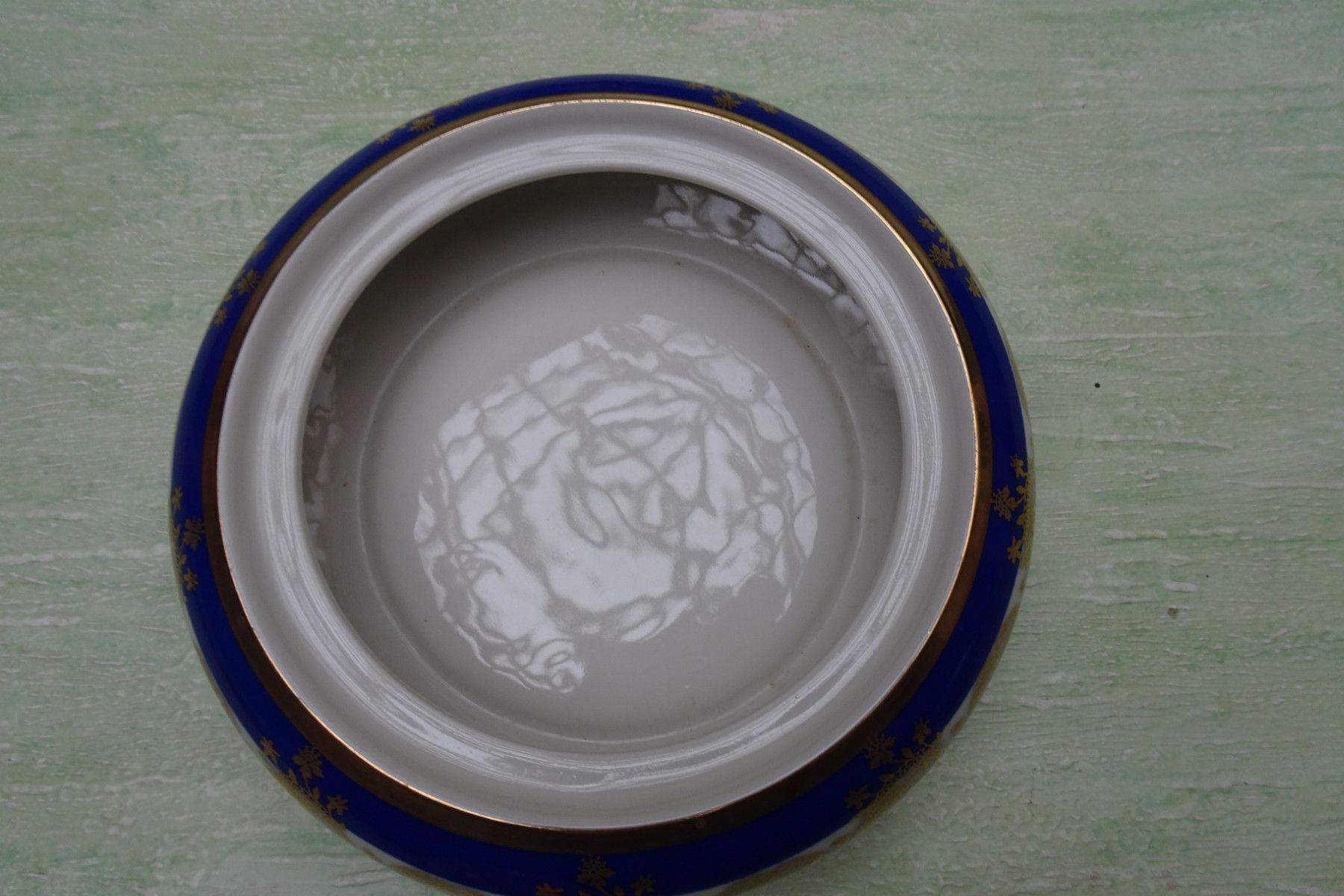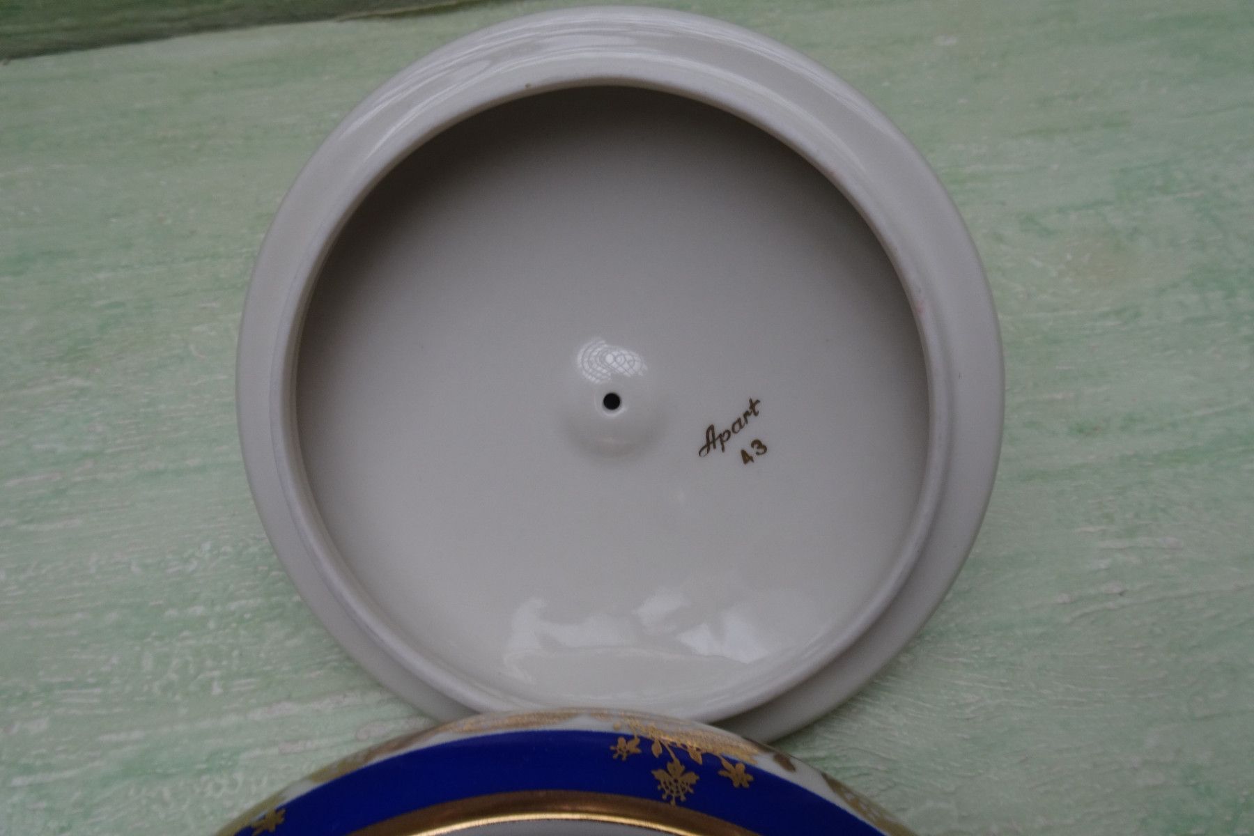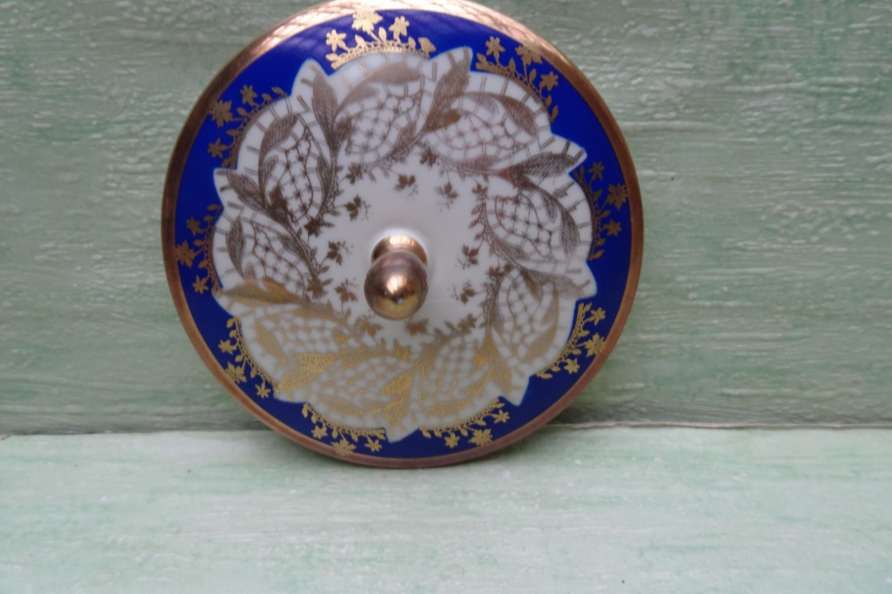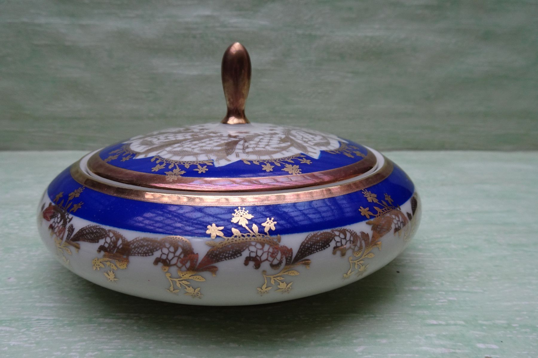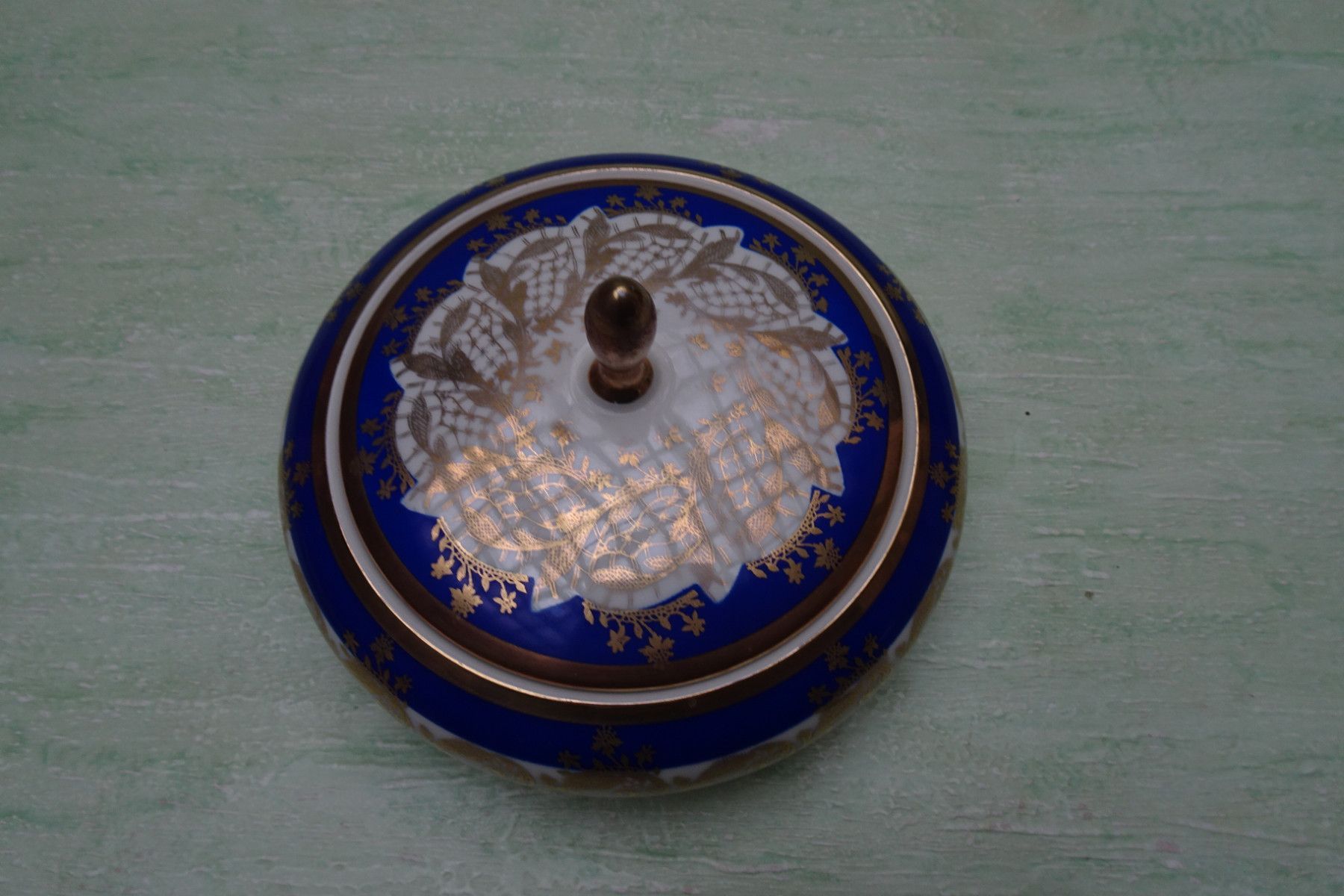 Alka Apart Konfektschale Deckeldose blau-creme-gold ca 9x16cm