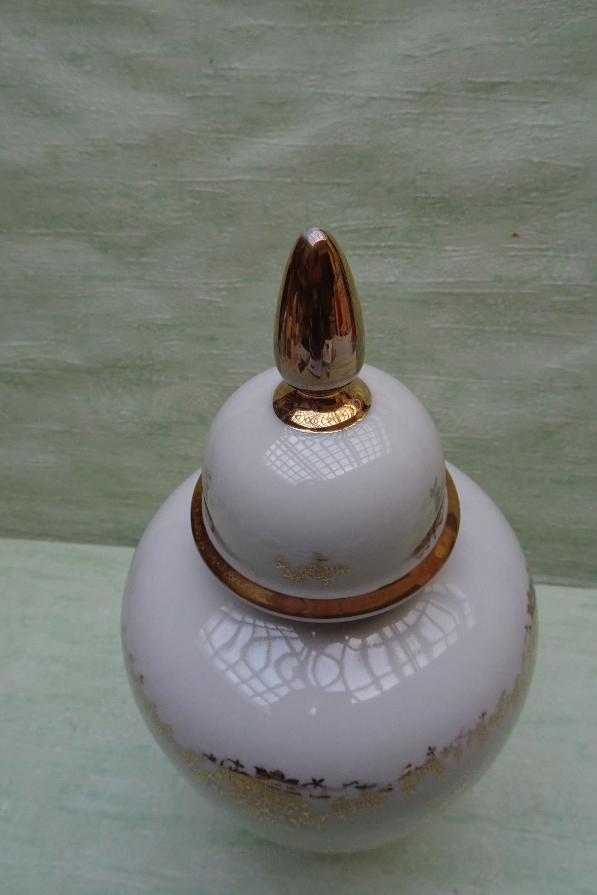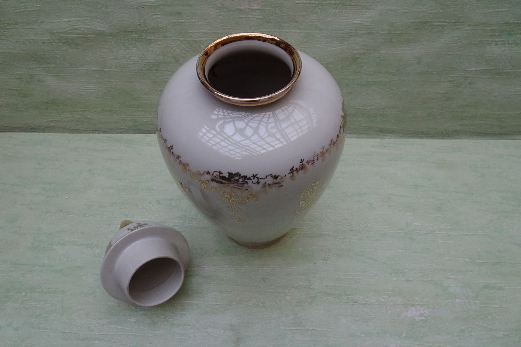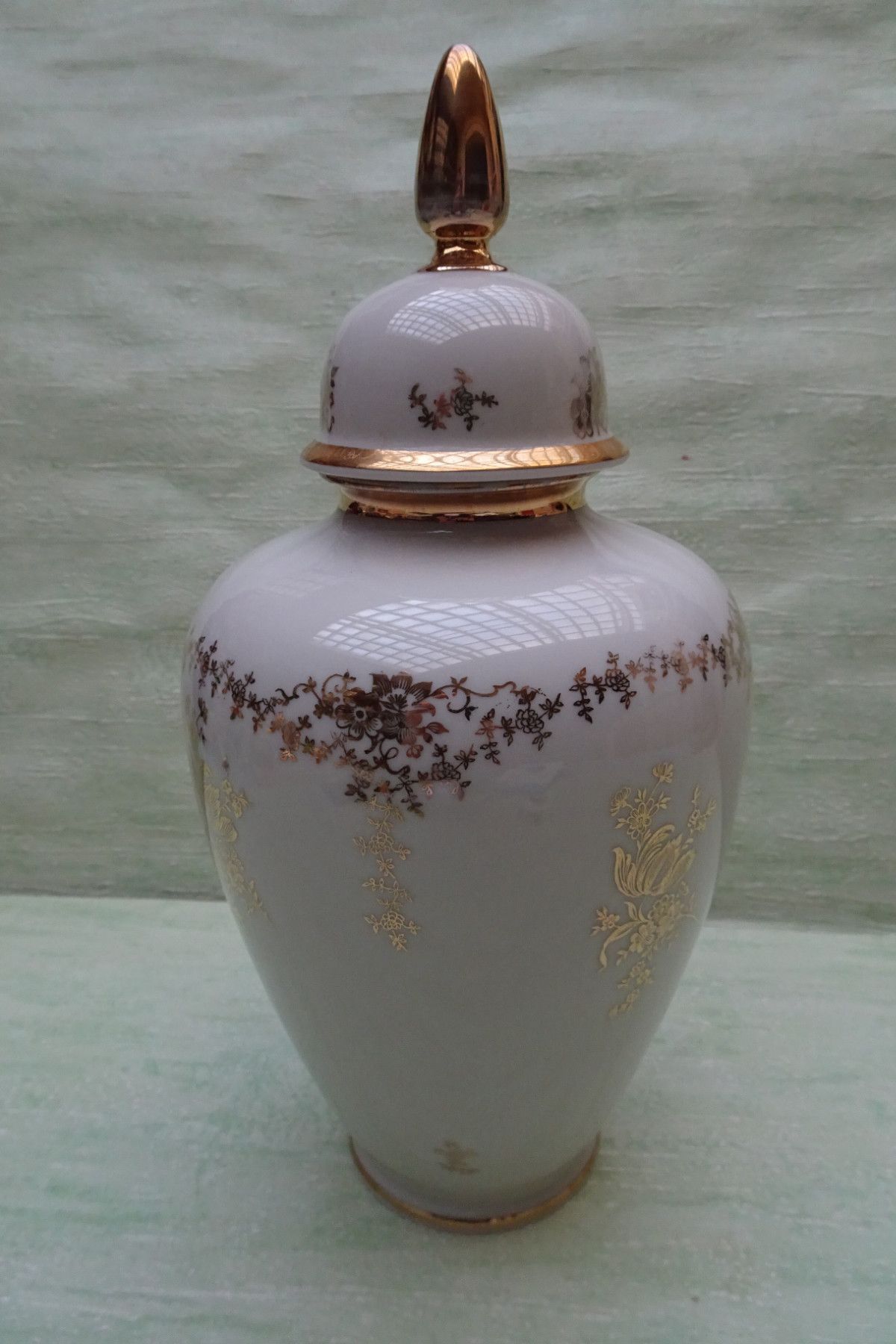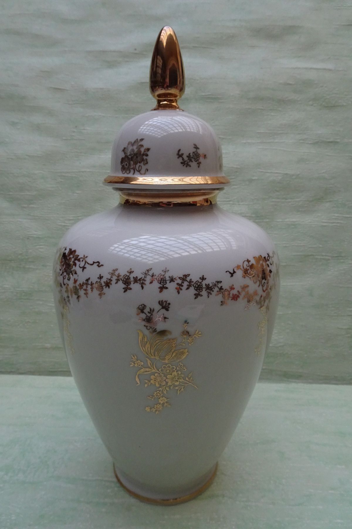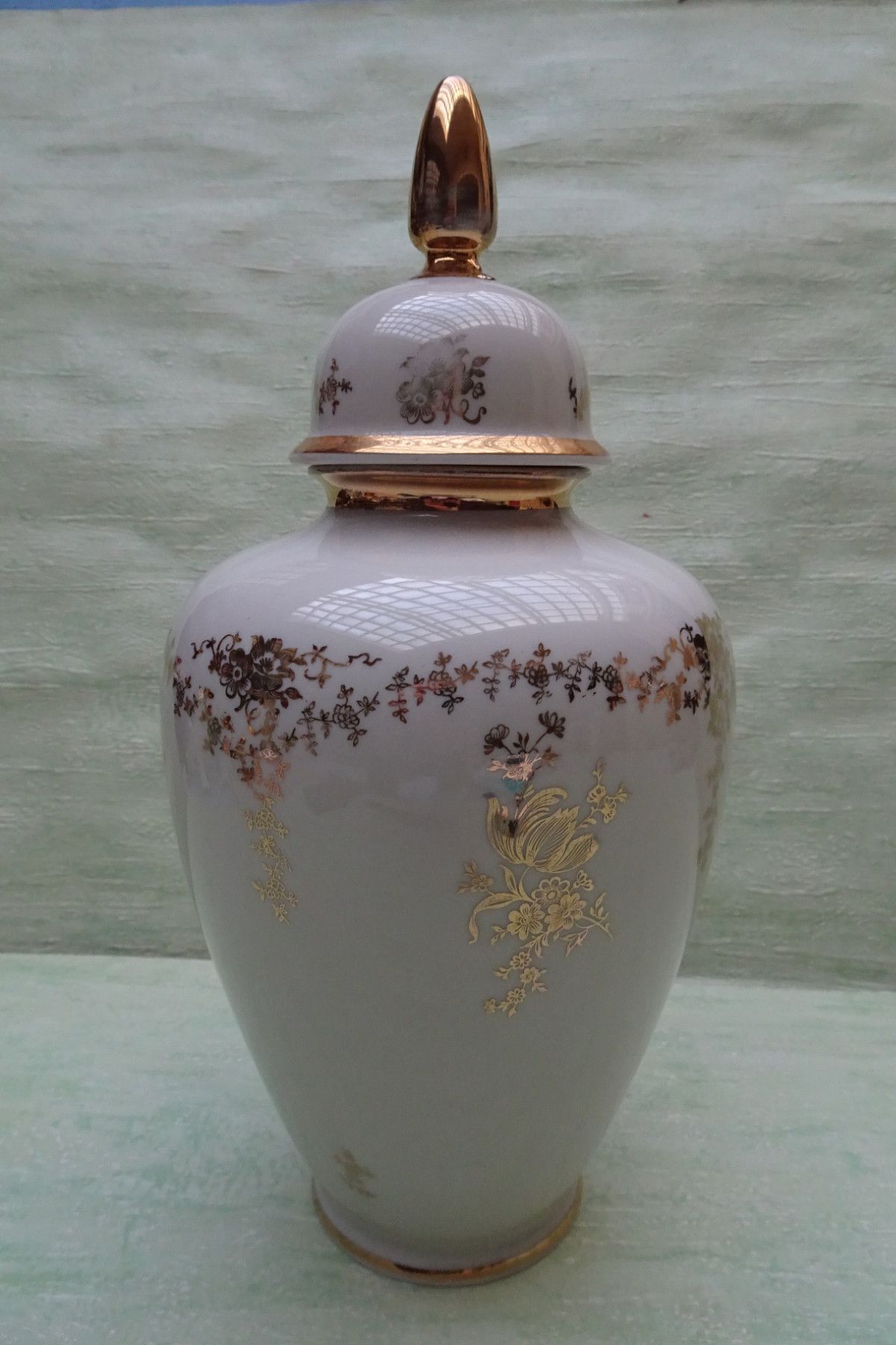alka Deckelvase Urne creme-golden Blumendekor ca 30 cm