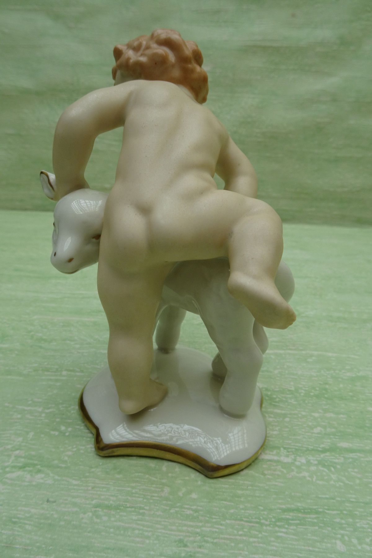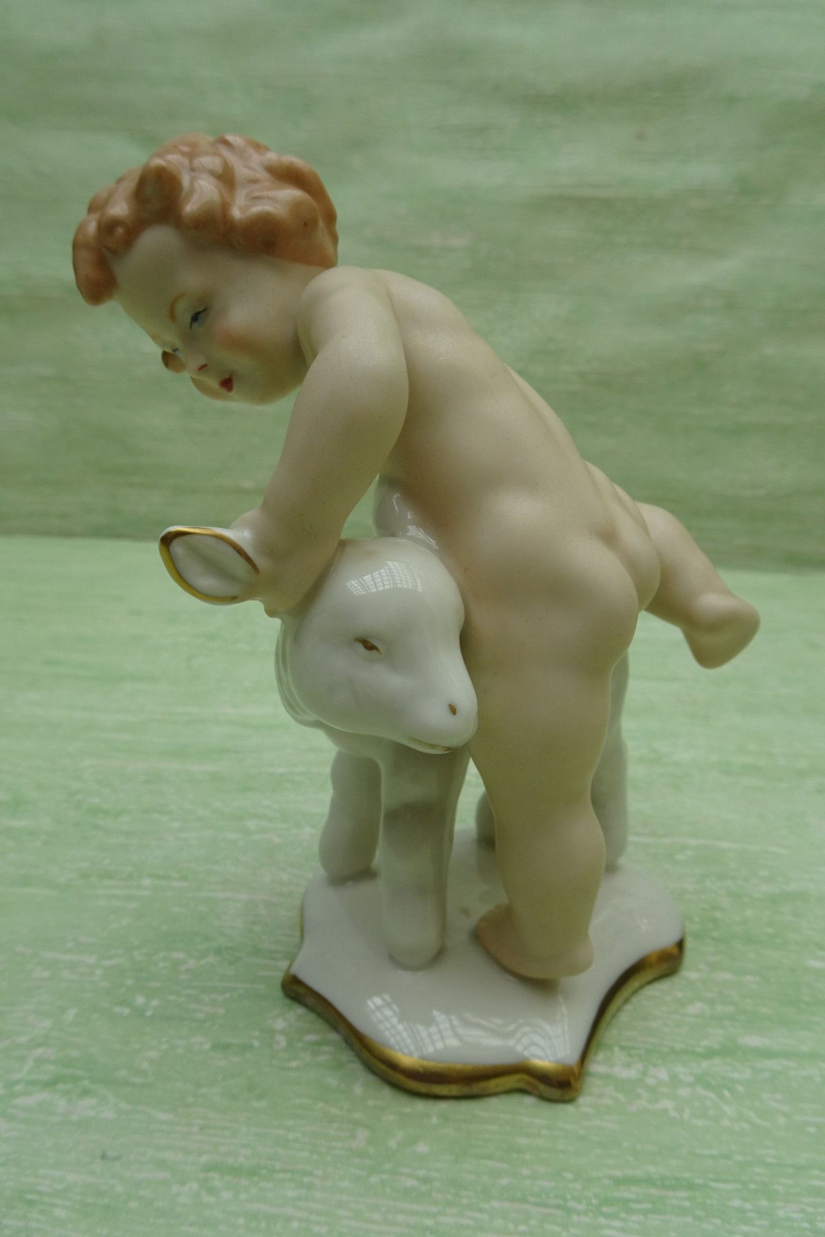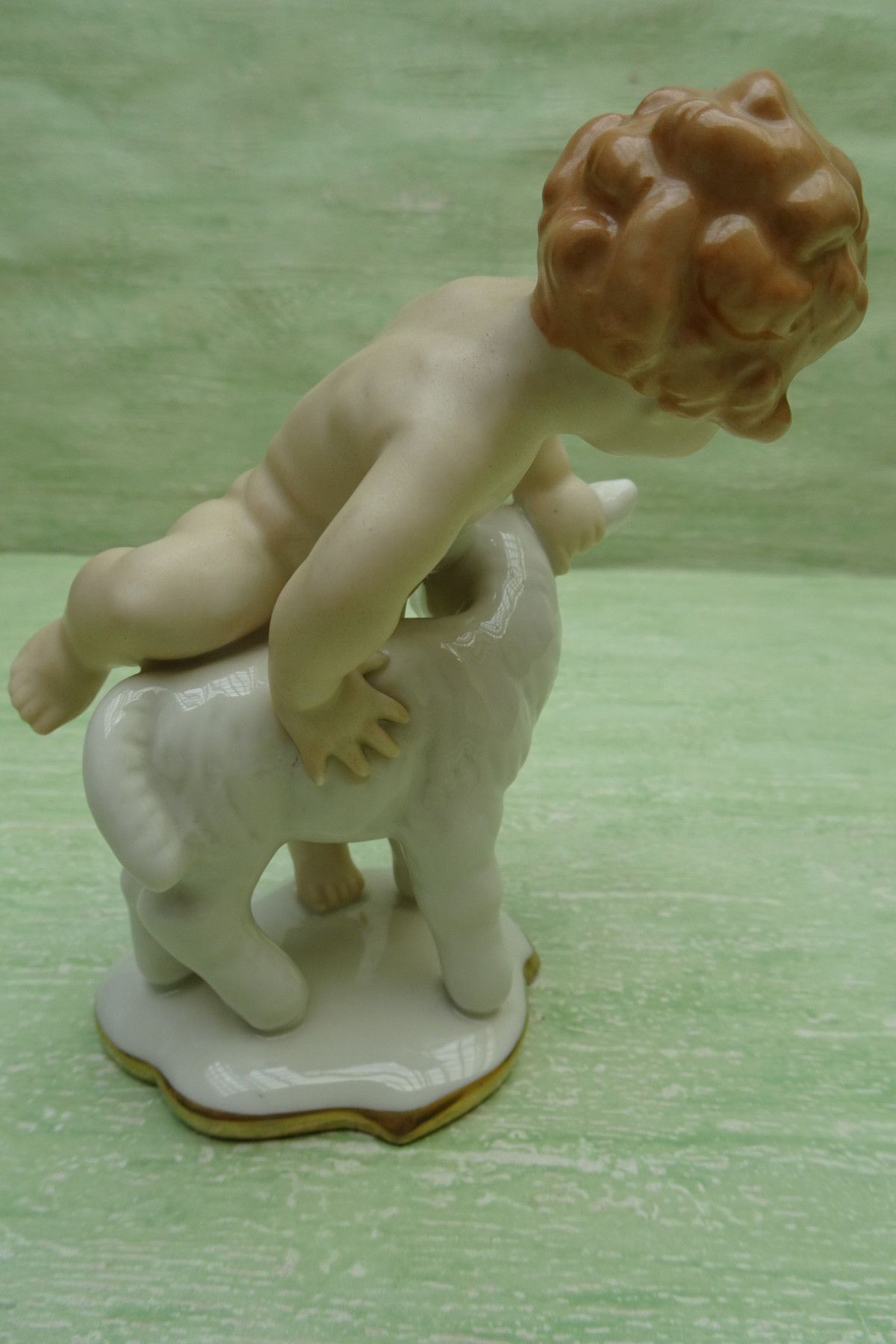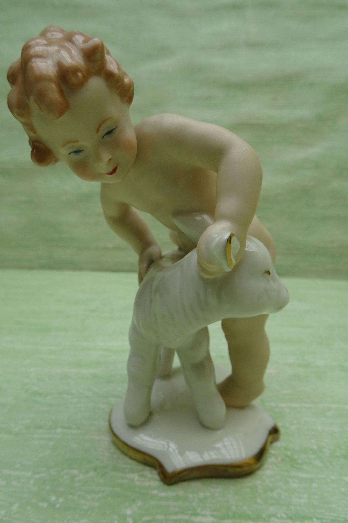Alka Kunst Alboth & Kaiser West Germany nr 260 Putte Engel Kind spielt mit Schaf
