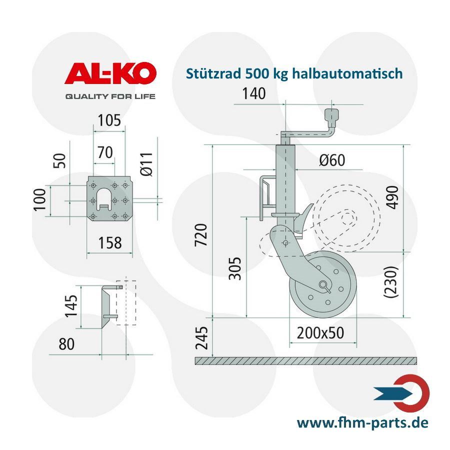 ALKO Stützrad halb- oder vollautomatisch 500kg Anhänger Schwerlaststützrad