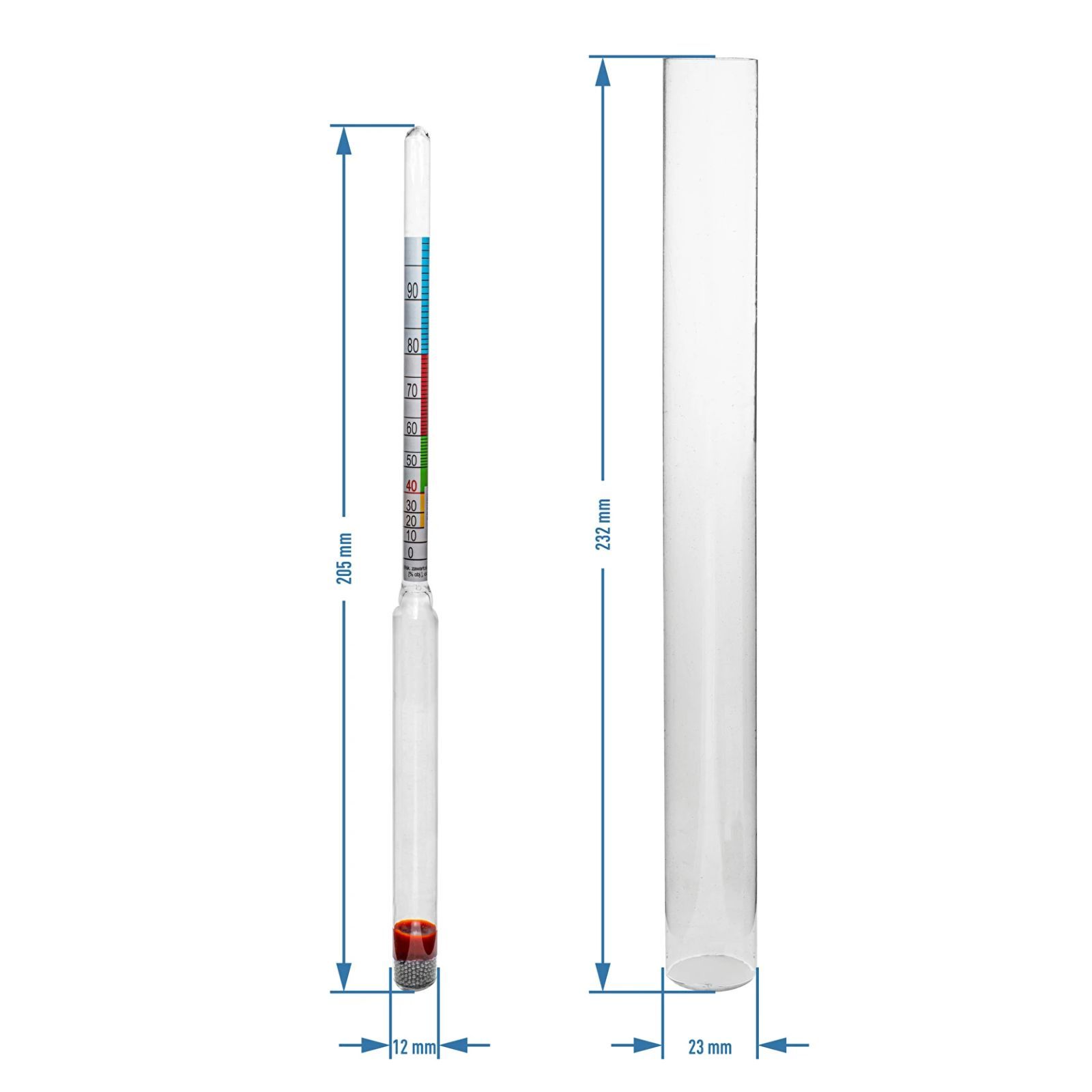 Alkoholmeter + Unzerbrechlichen Reagenzglas (bis 95%) Aräometer Spirtometer