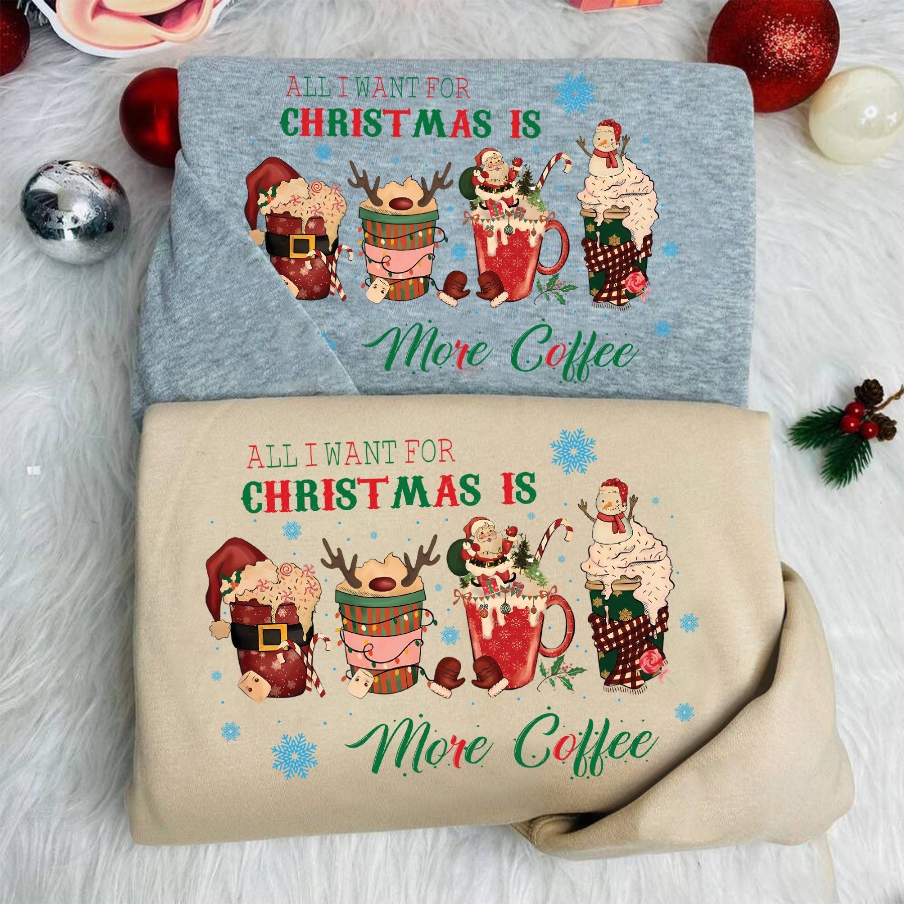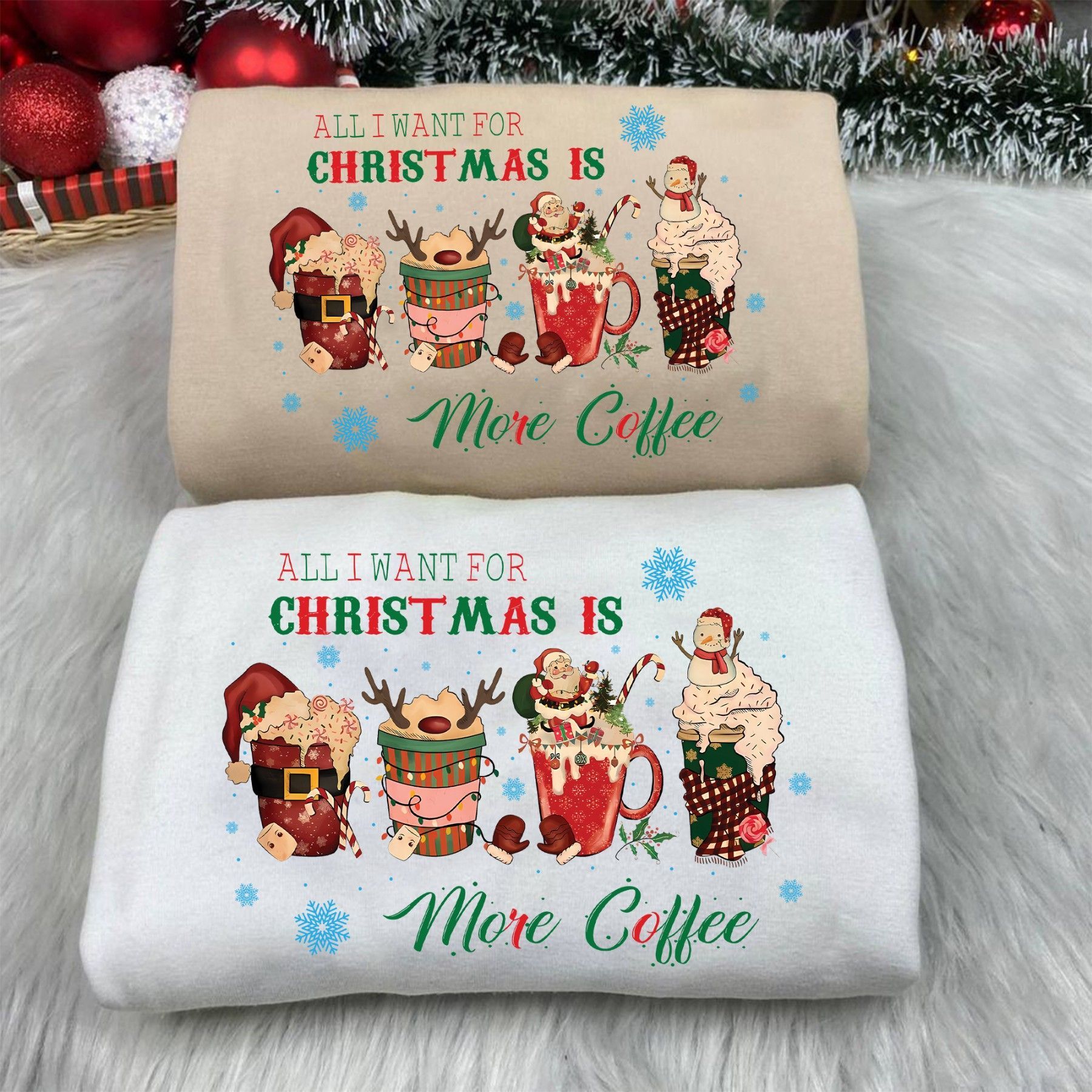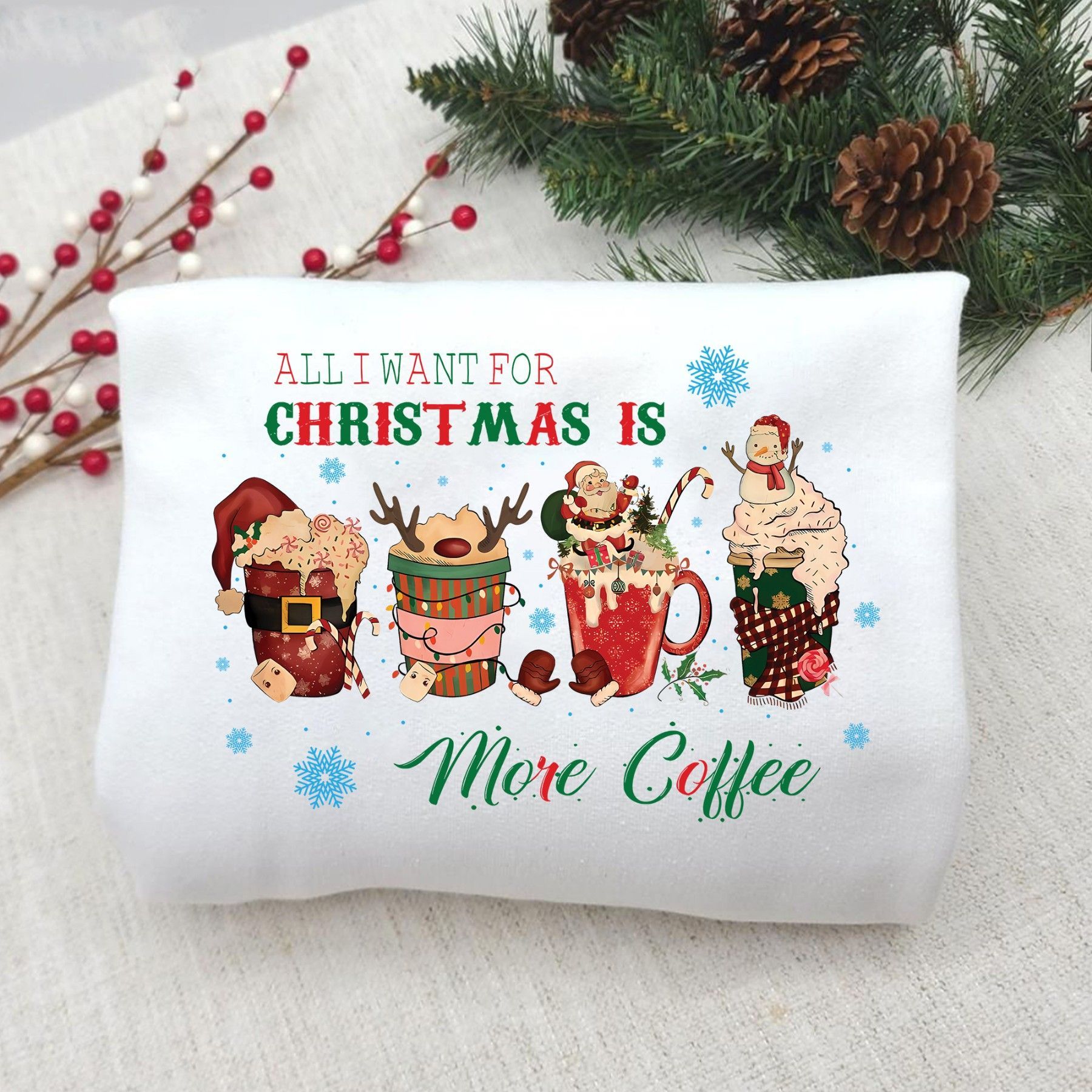 All I Want for Christmas Is More Coffee Shirt, Lustiges Weihnachts T-Shirt, Kaffee Sw