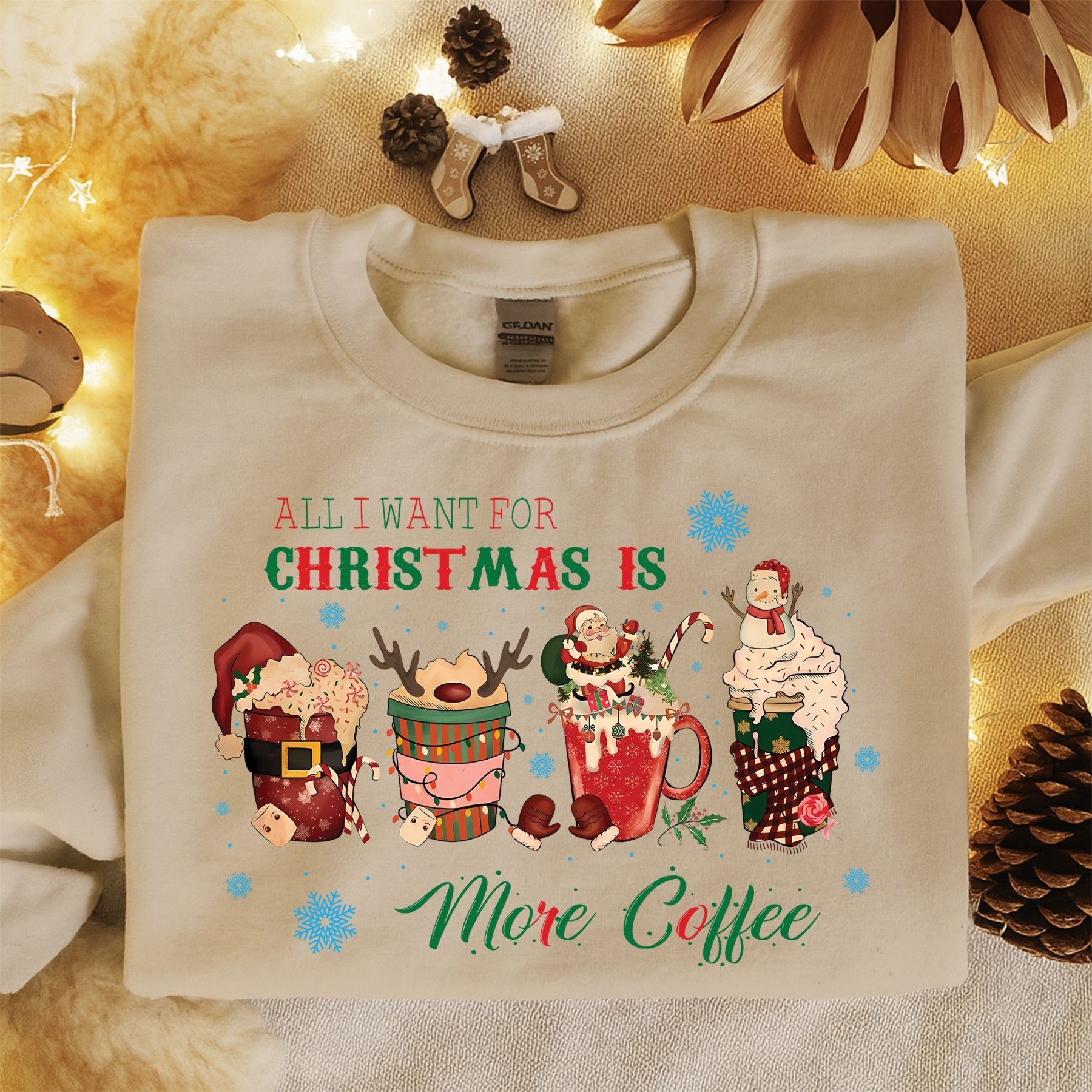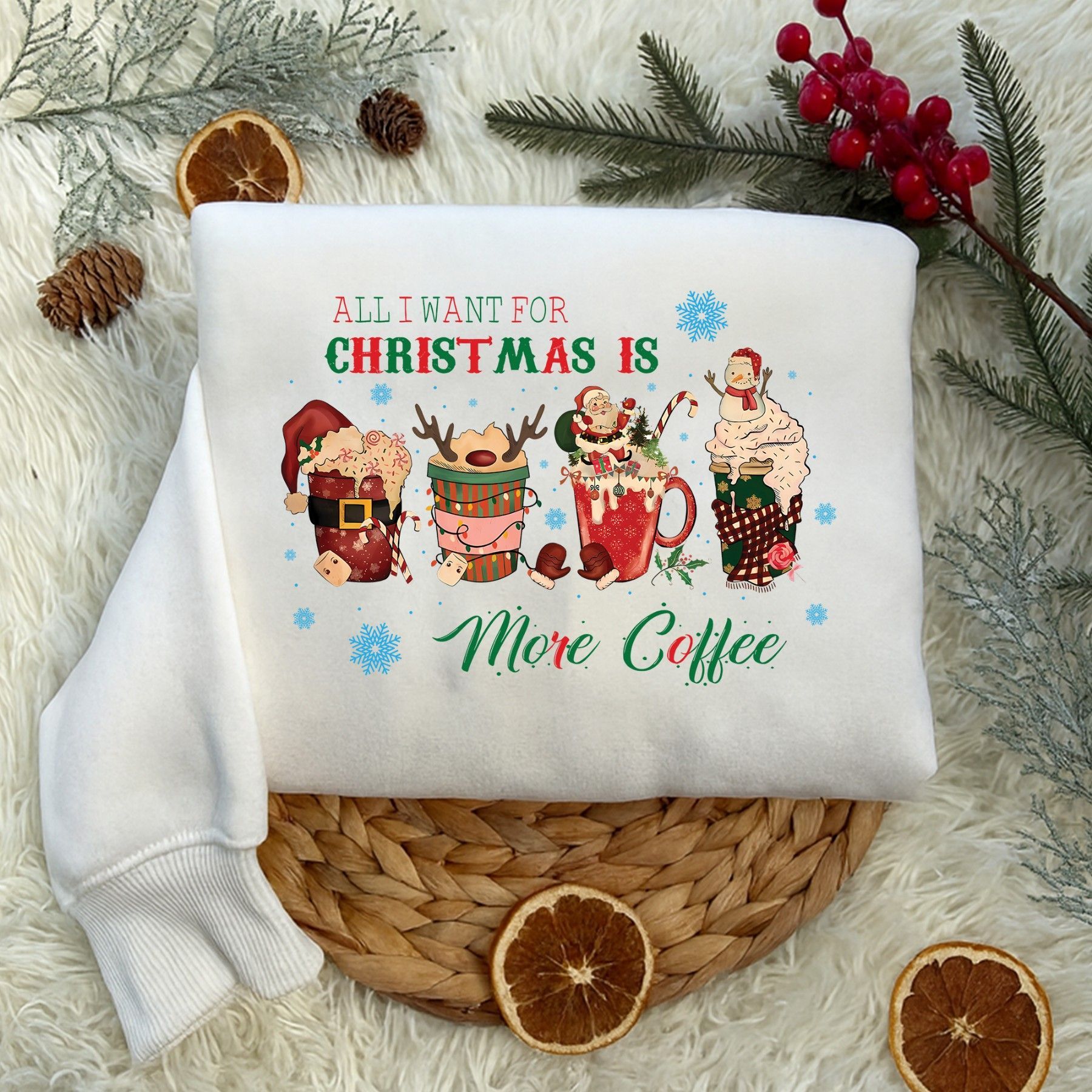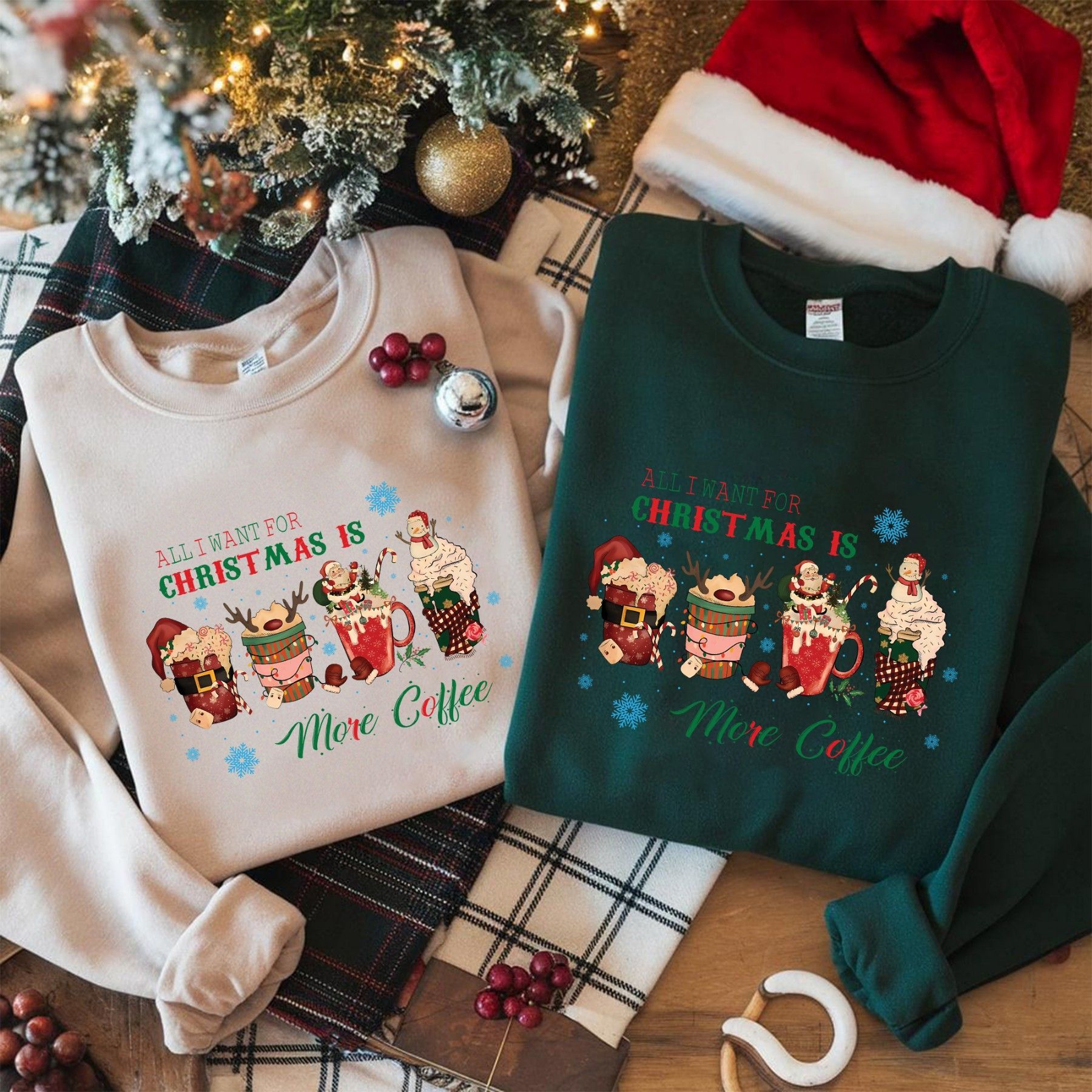 All I Want for Christmas Is More Coffee Shirt, Lustiges Weihnachts T-Shirt, Kaffee Sw