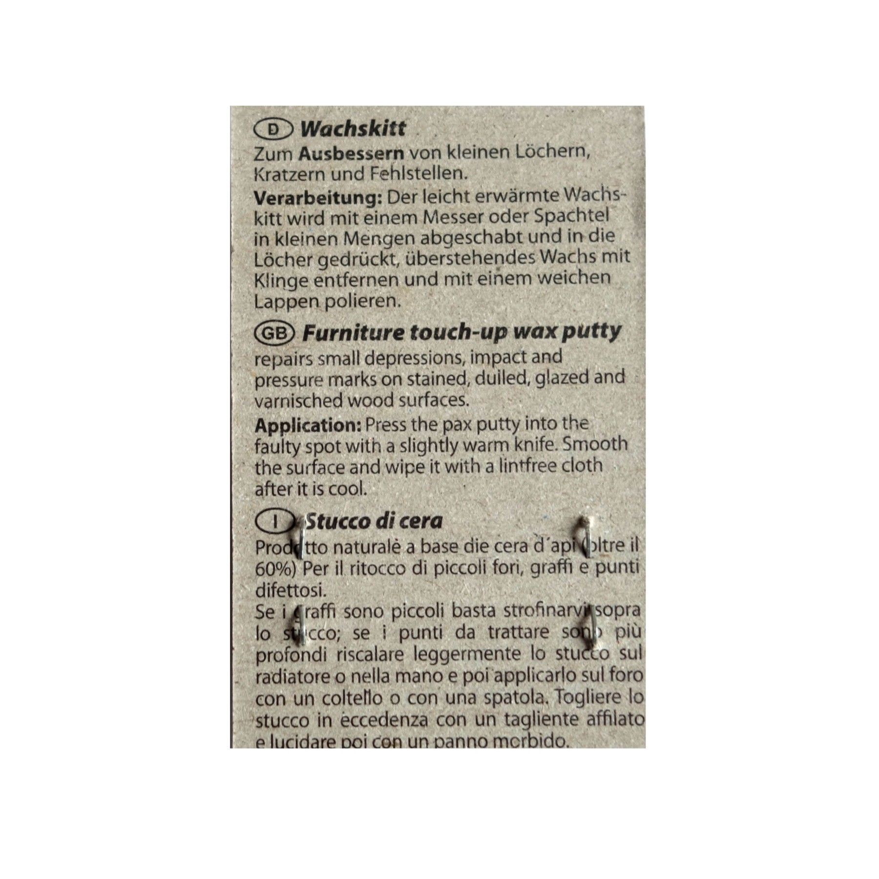Bindulin Allendo Wachskitt-Stange 7 g Stange SB Wachskitt auf Bienenwachsbasis. Zum Ausbessern von kleinen Löchern, Kratzern und Fehlstellen im Holz und Kunststoff. Anschließendes Mattieren, Wachsen oder Polieren ist möglich. Anwendung Der leicht erwärmte Wachskitt wird mit einem Messer oder Spachte