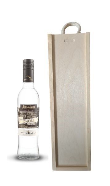 Allgäuer Selektion Edel Wacholder 0,35 Liter in einer Holzbox mit Tragekordel