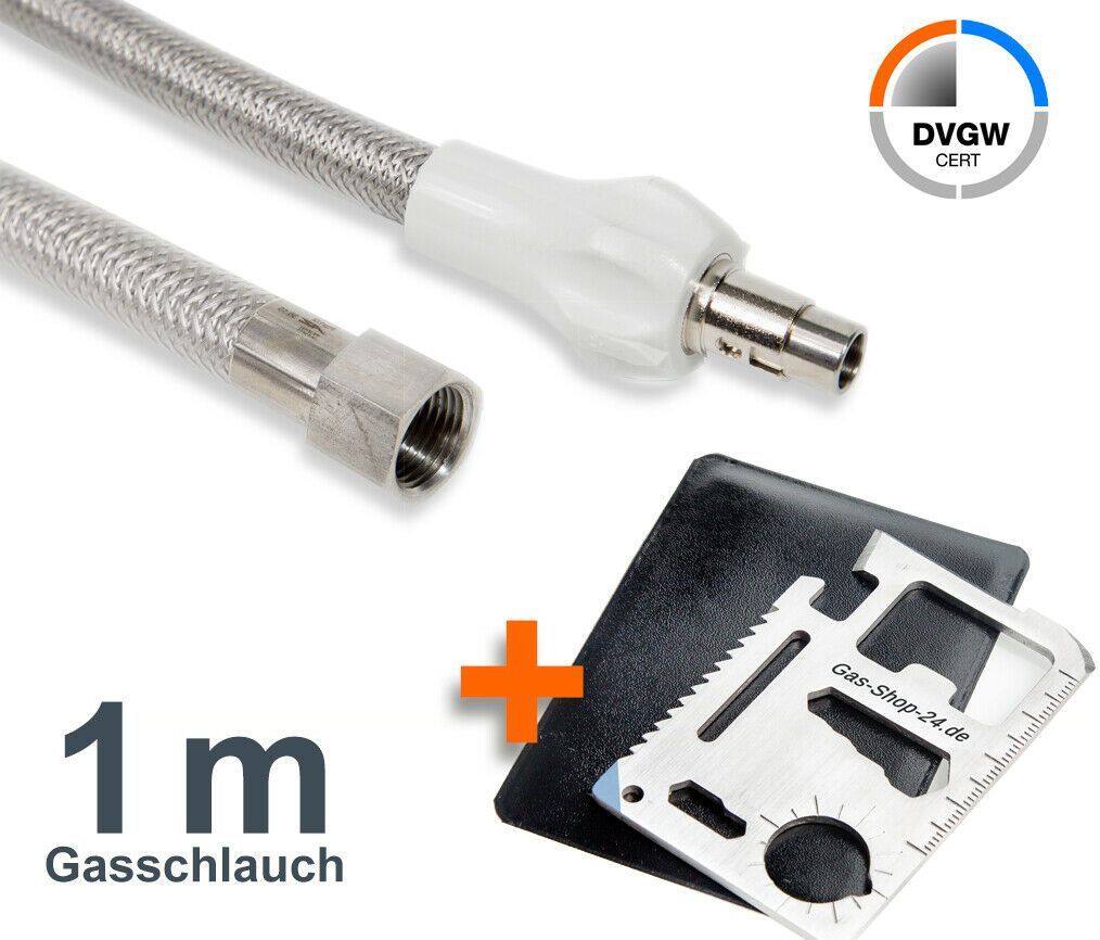 GOK Allgas-Gasschlauch Gassteckschlauch 100 cm Edelstahl Gas Schlauch f Gassteckdose