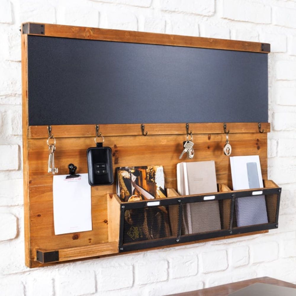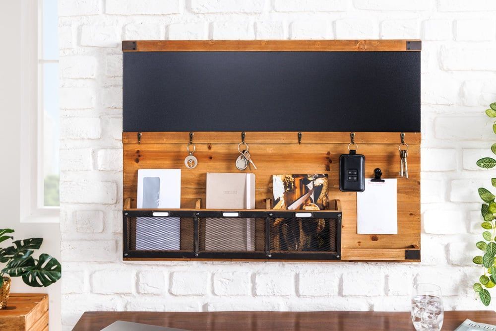 Alltagshelfer Wandboard MURAL 80cm Pinie Kreidetafel Haken Schlüsselbrett