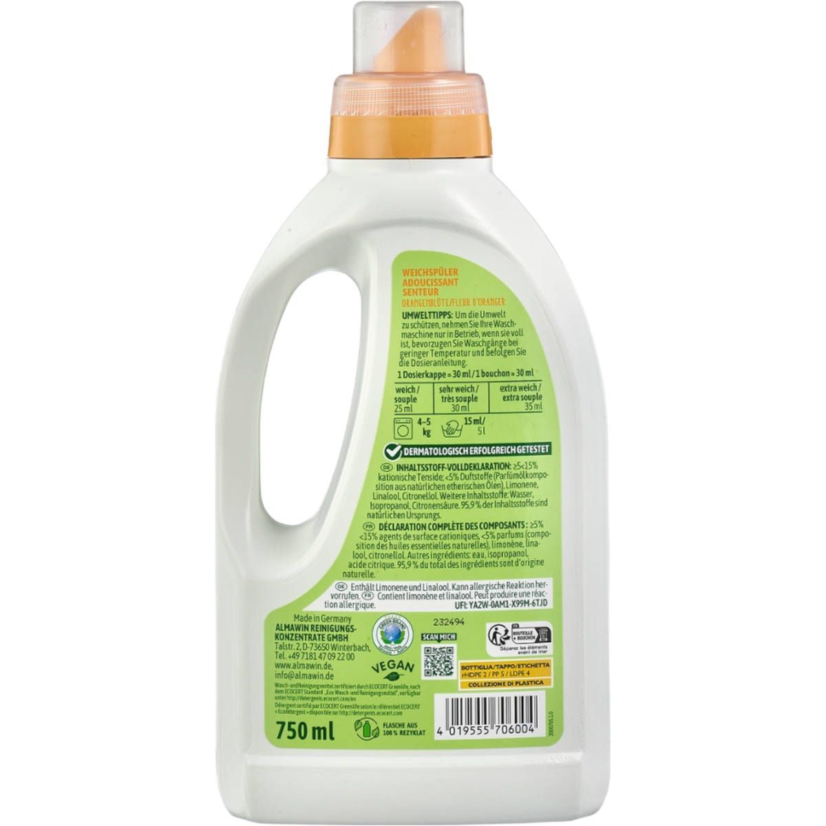 AlmaWin Weichspüler Orangenblüte vegan 0.75 Liter