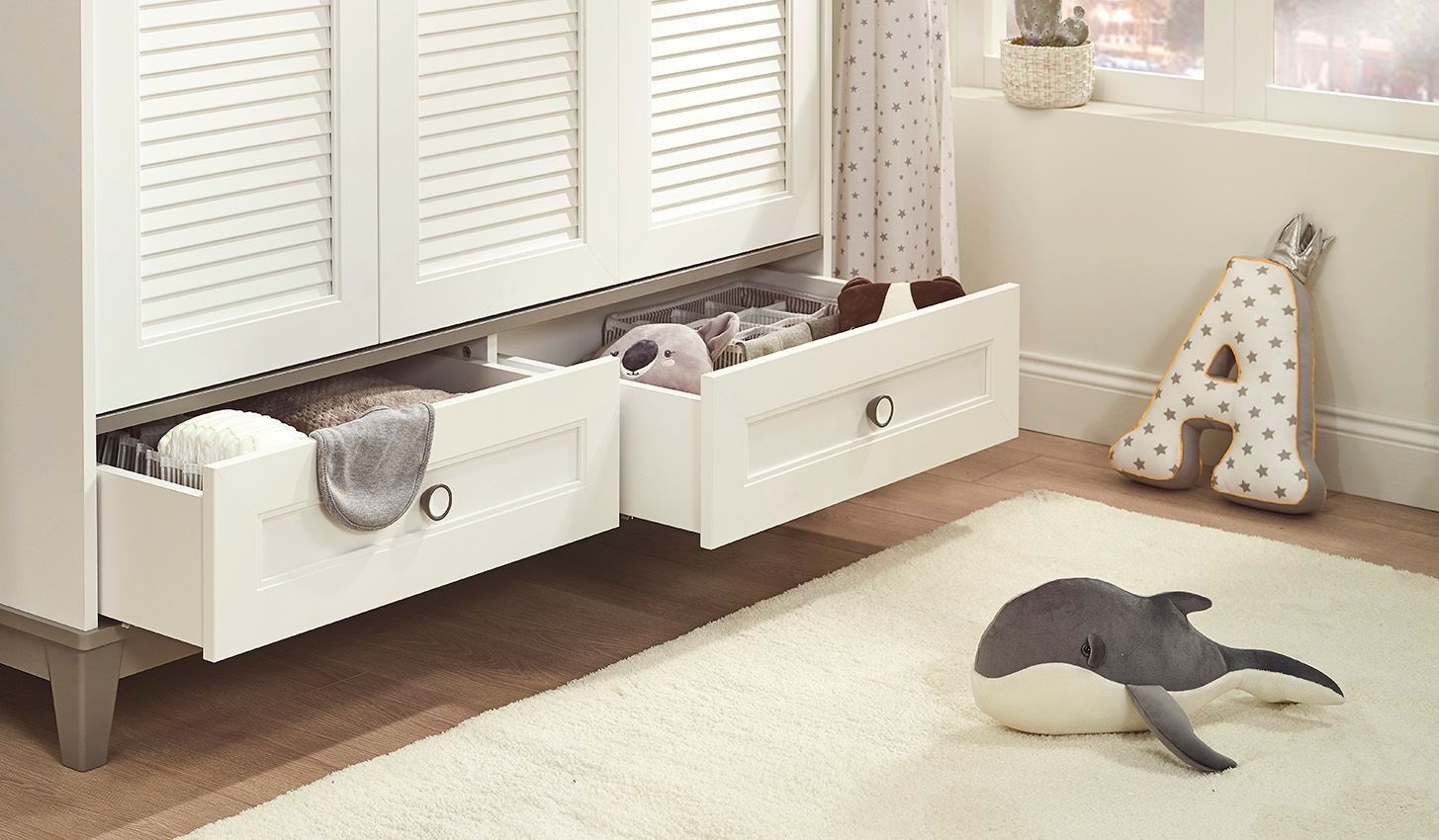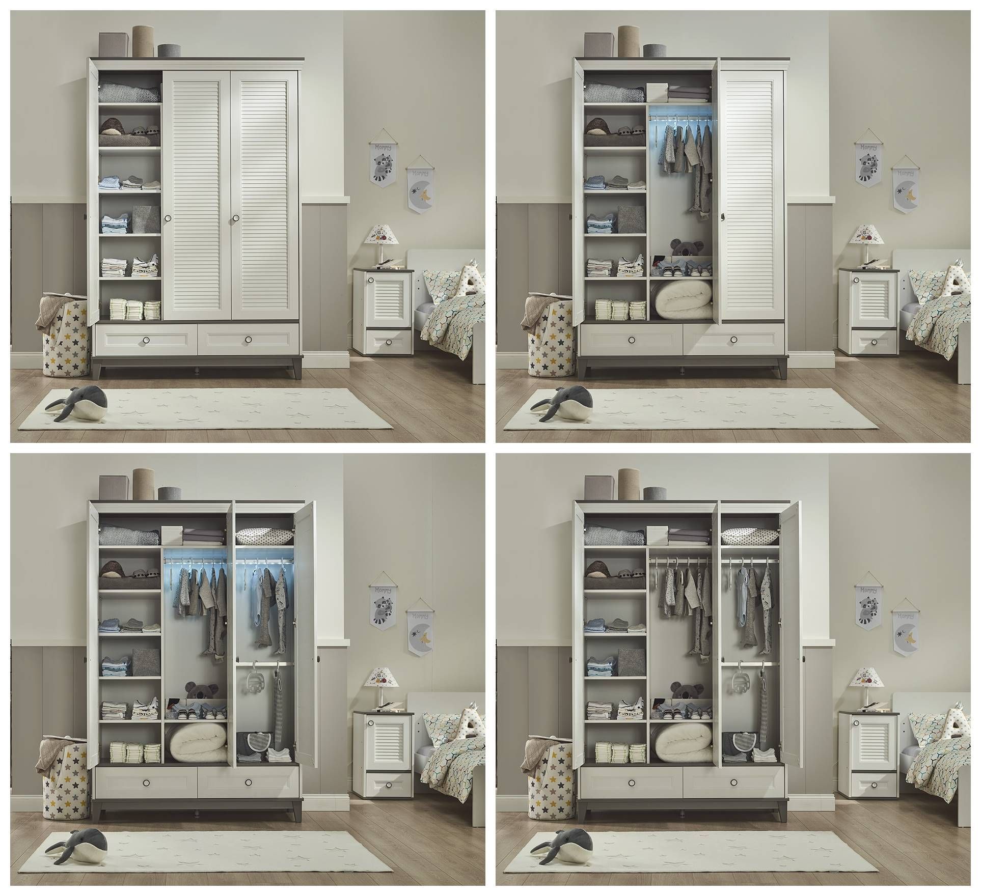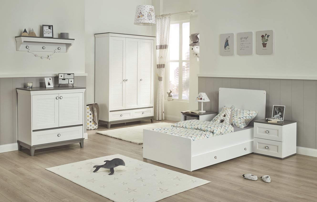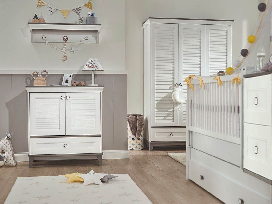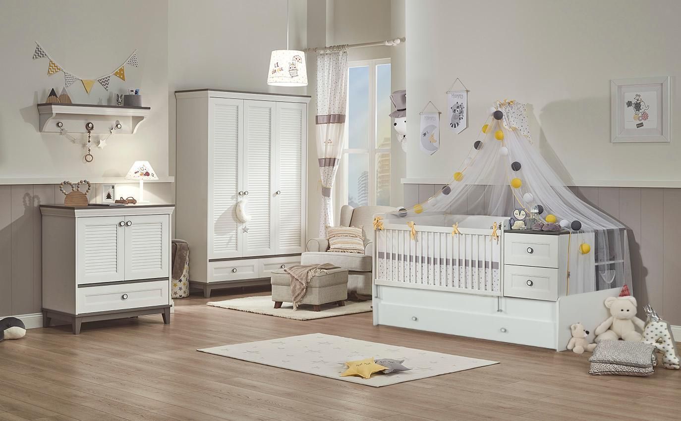 Almila Babyzimmer Set 4-teilig Mia mit mitwachsendem Babybett