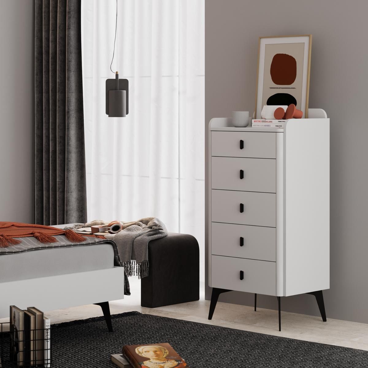 Almila Kommode Hoch Vena Weiß mit Schubladen Modern