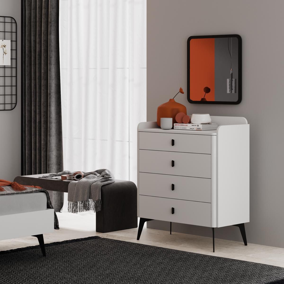 Almila Kommode Vena Weiß mit Schubladen Modern