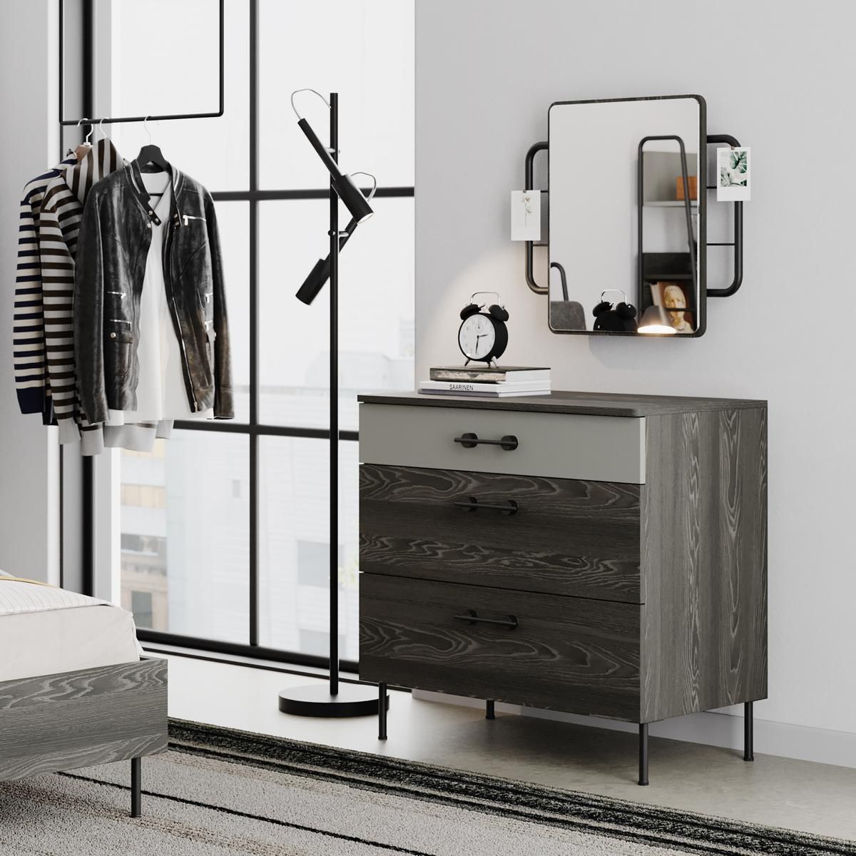 Almila Schubladenkommode Arwen Eiche schwarz