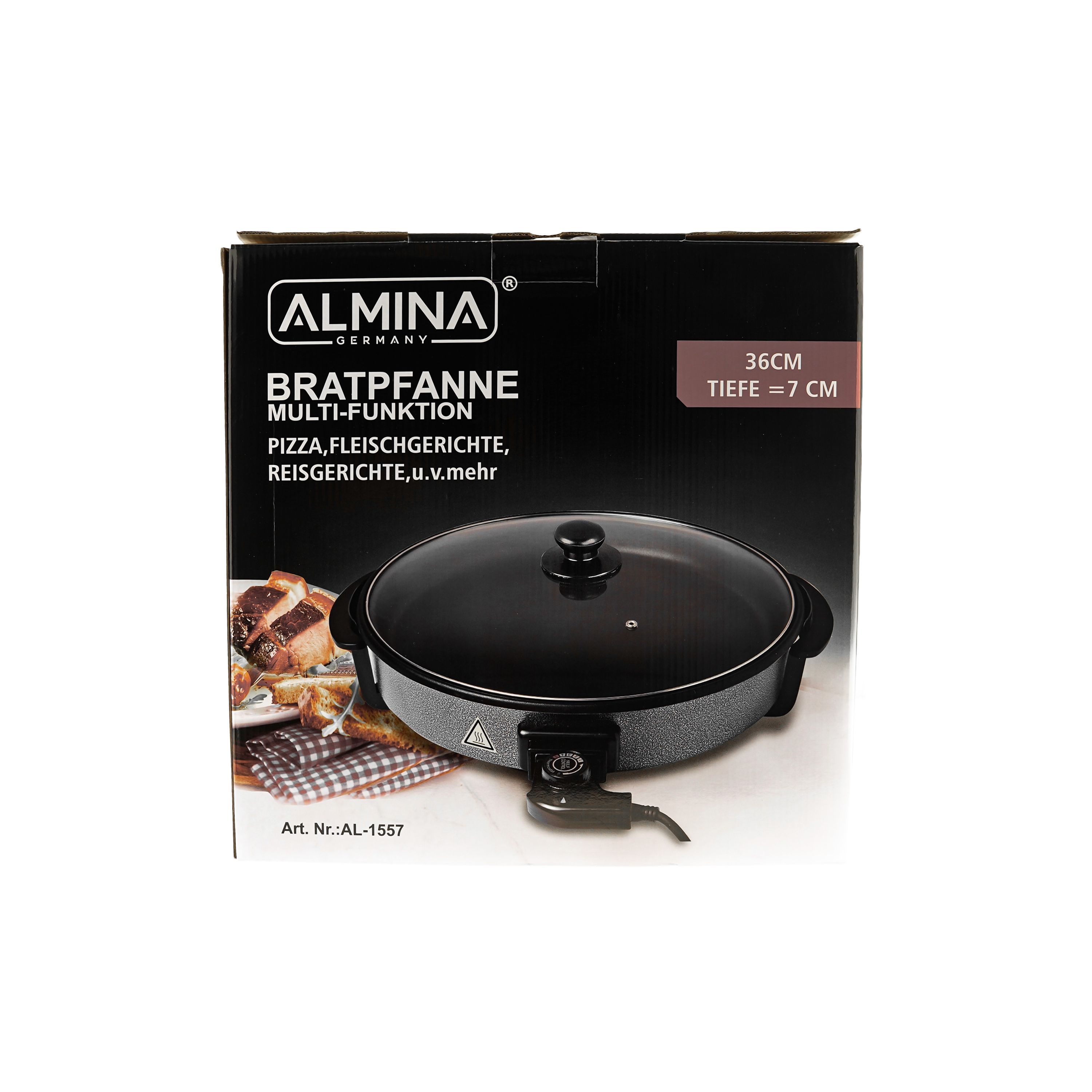 Almina Elektrische Multifunktionspfanne Bratpfanne Pizzapfanne Antihaftbeschichtet