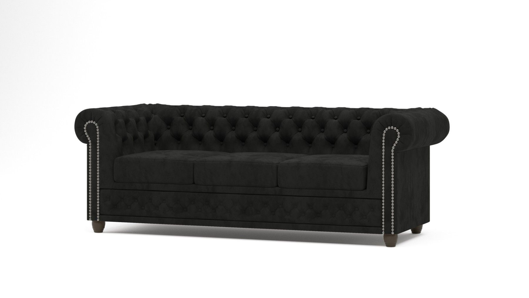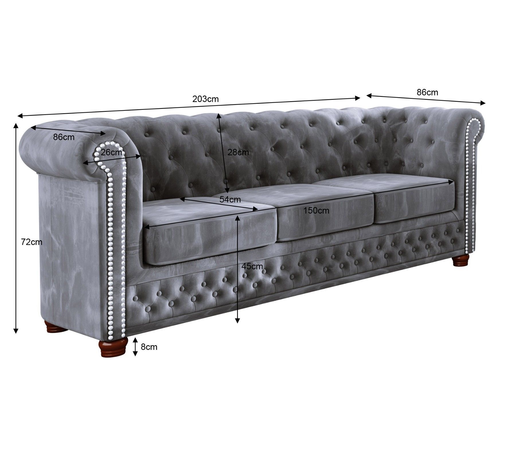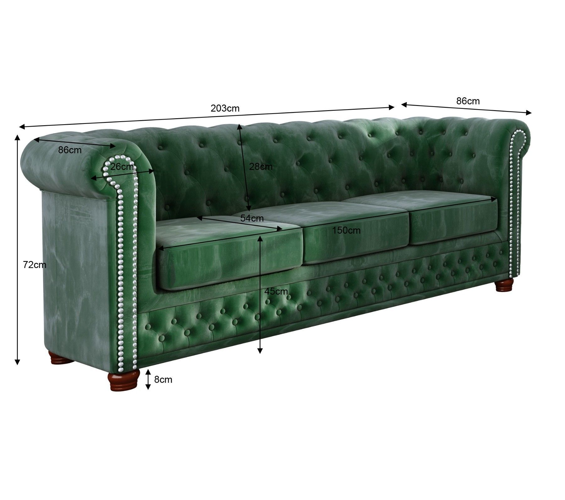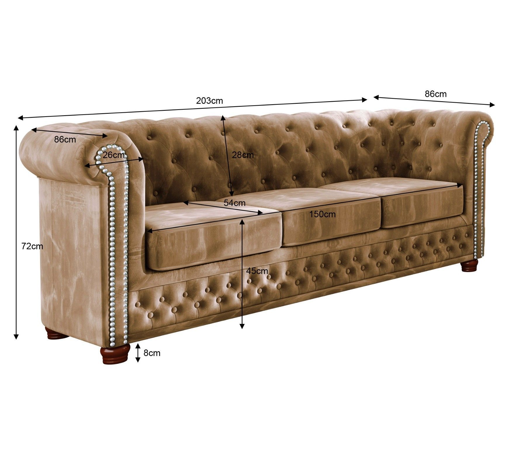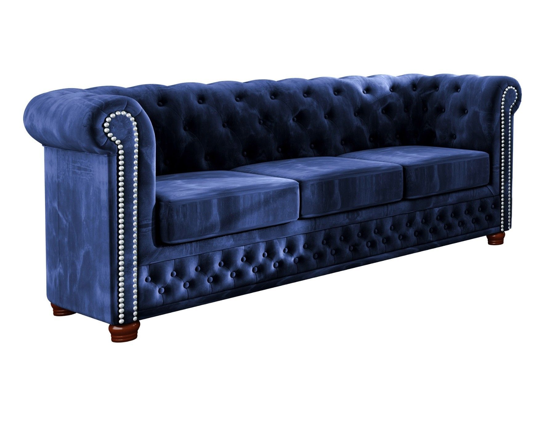 Alnem - Chesterfield Sofa 3-Sitzer aus Samt-Stoff mit Holzfüßen