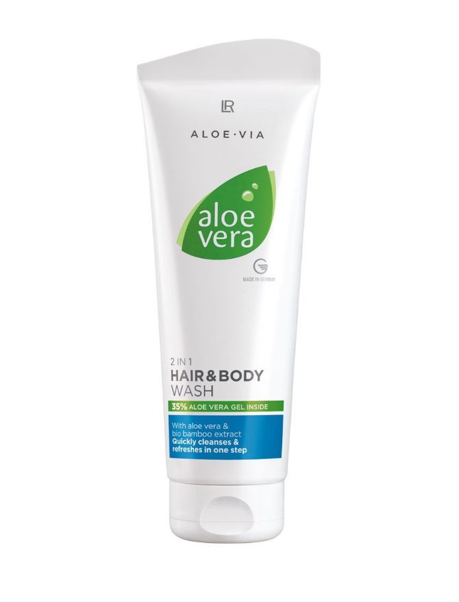 Erfrischendes Duschgel für Körper und Haare Mit 35% Aloe Vera-Gel und Bio-Bambus-Extrakt Schnelle, einfache & effektive All-in-one-Reinigung und -Pflege Aloe Vera 2 in 1 Hair & Body Wash LR ALOE VIA Aloe Vera 2in1 Haar- & Körpershampoo – gründliche Reinigung von Kopf bis Fuß Das LR