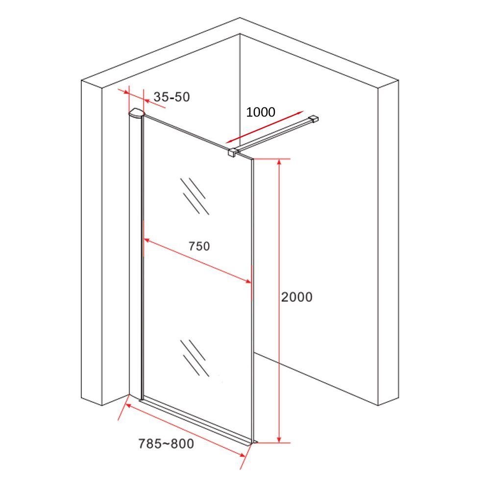 Aloni Duschwand Duschabtrennung Spiegelglas 8mm 800x2000mm