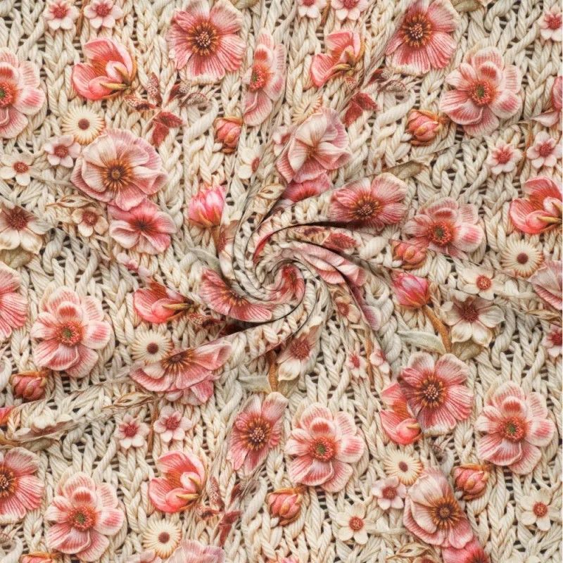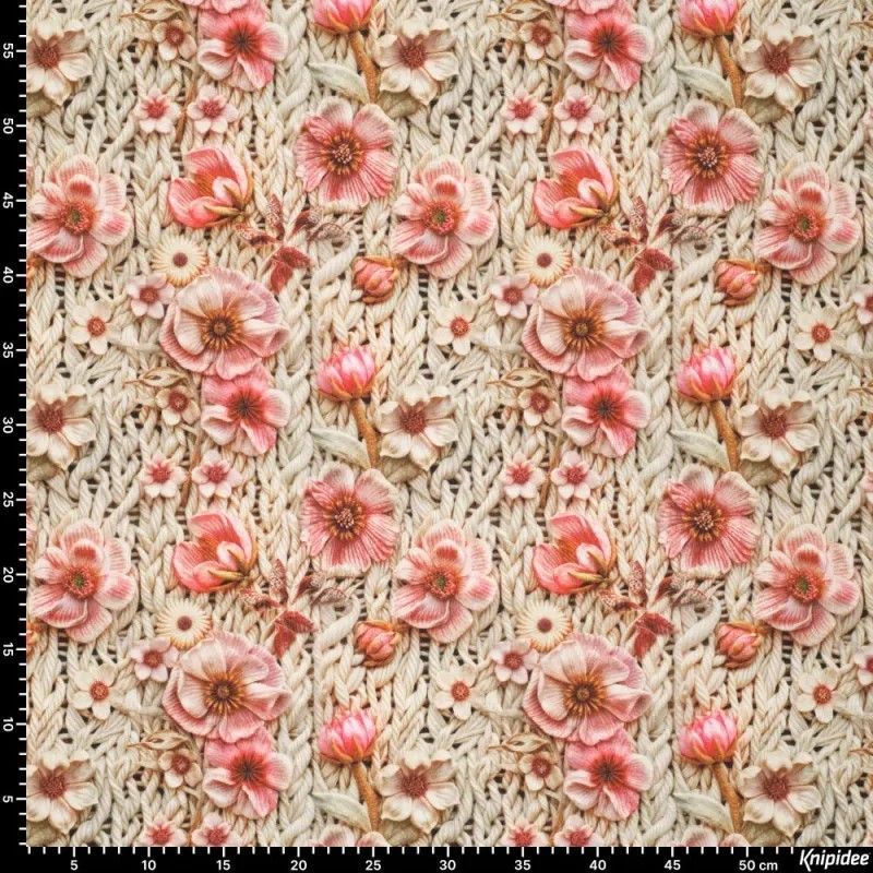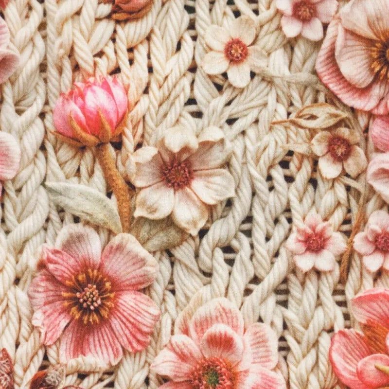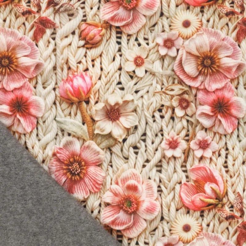 Alpenfleece Stoff mit Anemonen Blumen Strickoptik naturweiss 50 x 150 cm Kuschelsweat