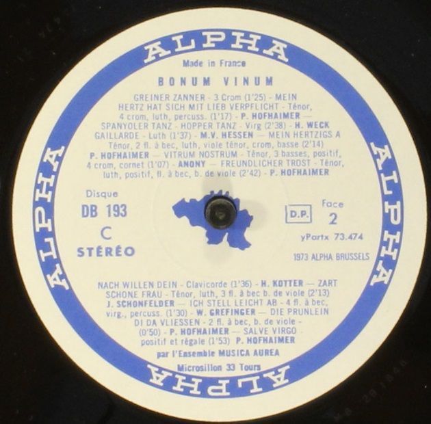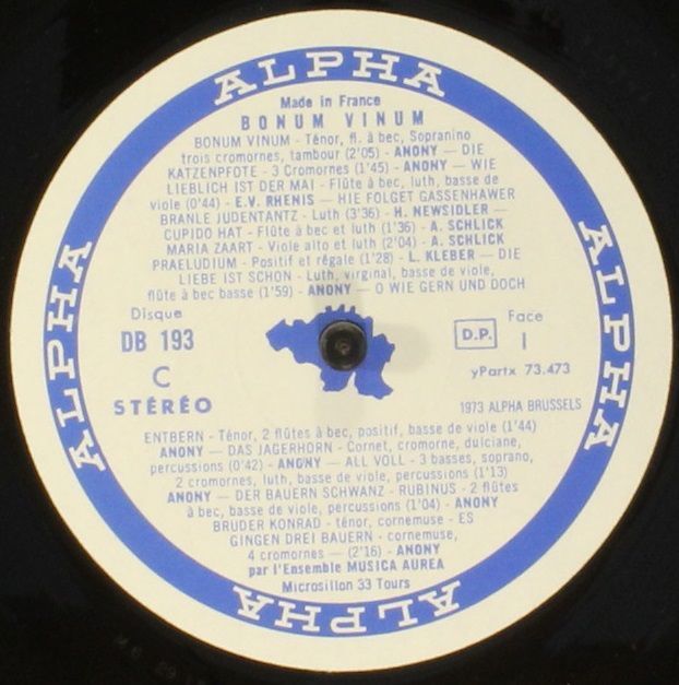 Alpha (34) DB 193 - Musica Aurea - Bonum Vinum - Musique Allemande Des 15? Et