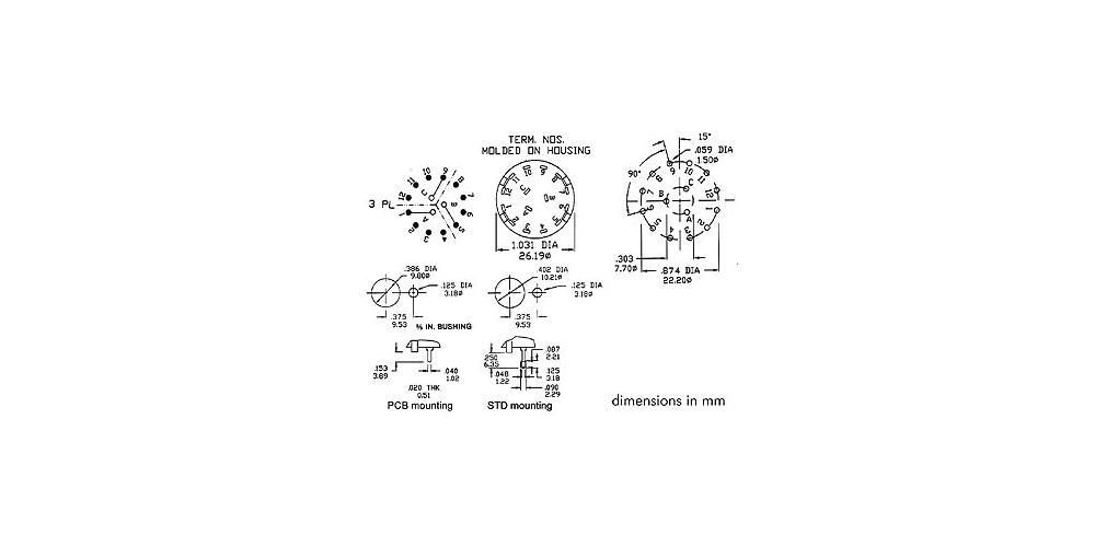 • Alpha Drehschalter 1-POLIG / 12 Positionen - Lötanschlüsse