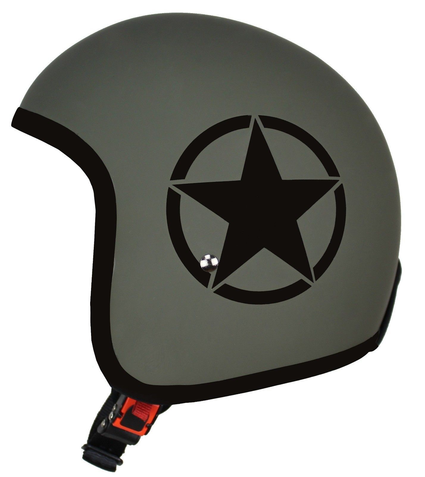 Alpha Speeds Jet Helm Biker Chopper Motorrad Jet Helm Custom Retro Star Olive Grün