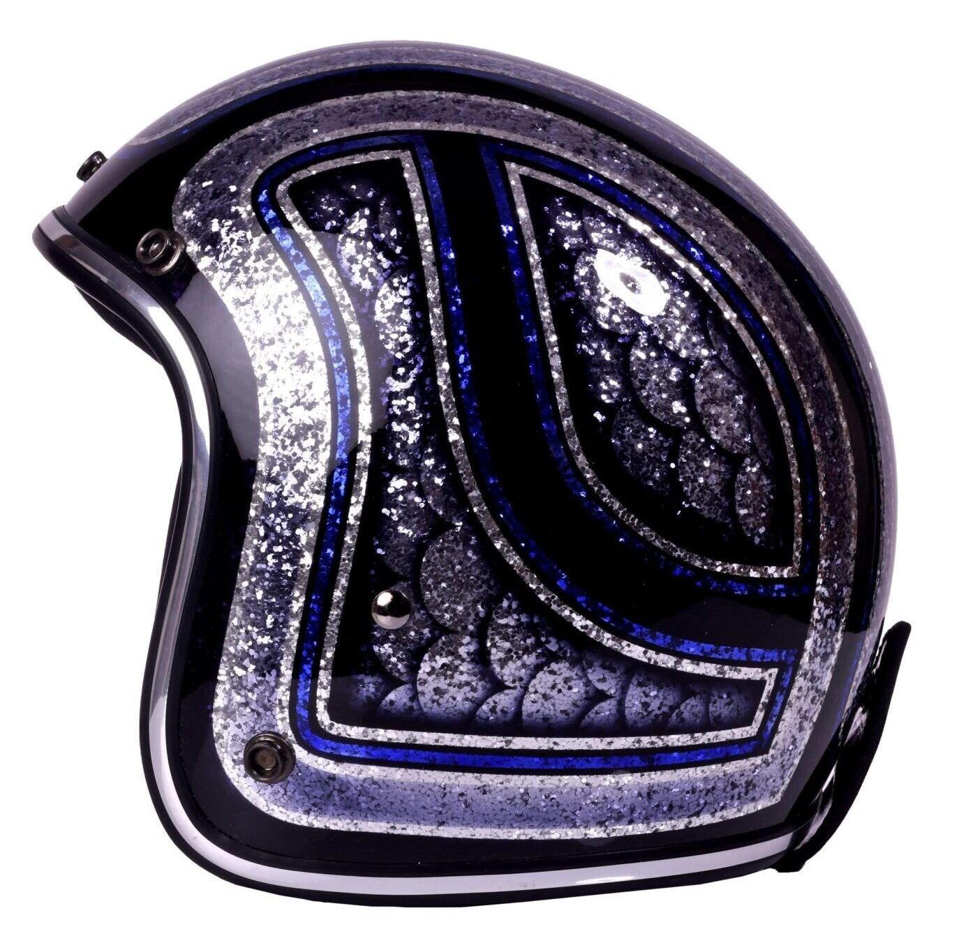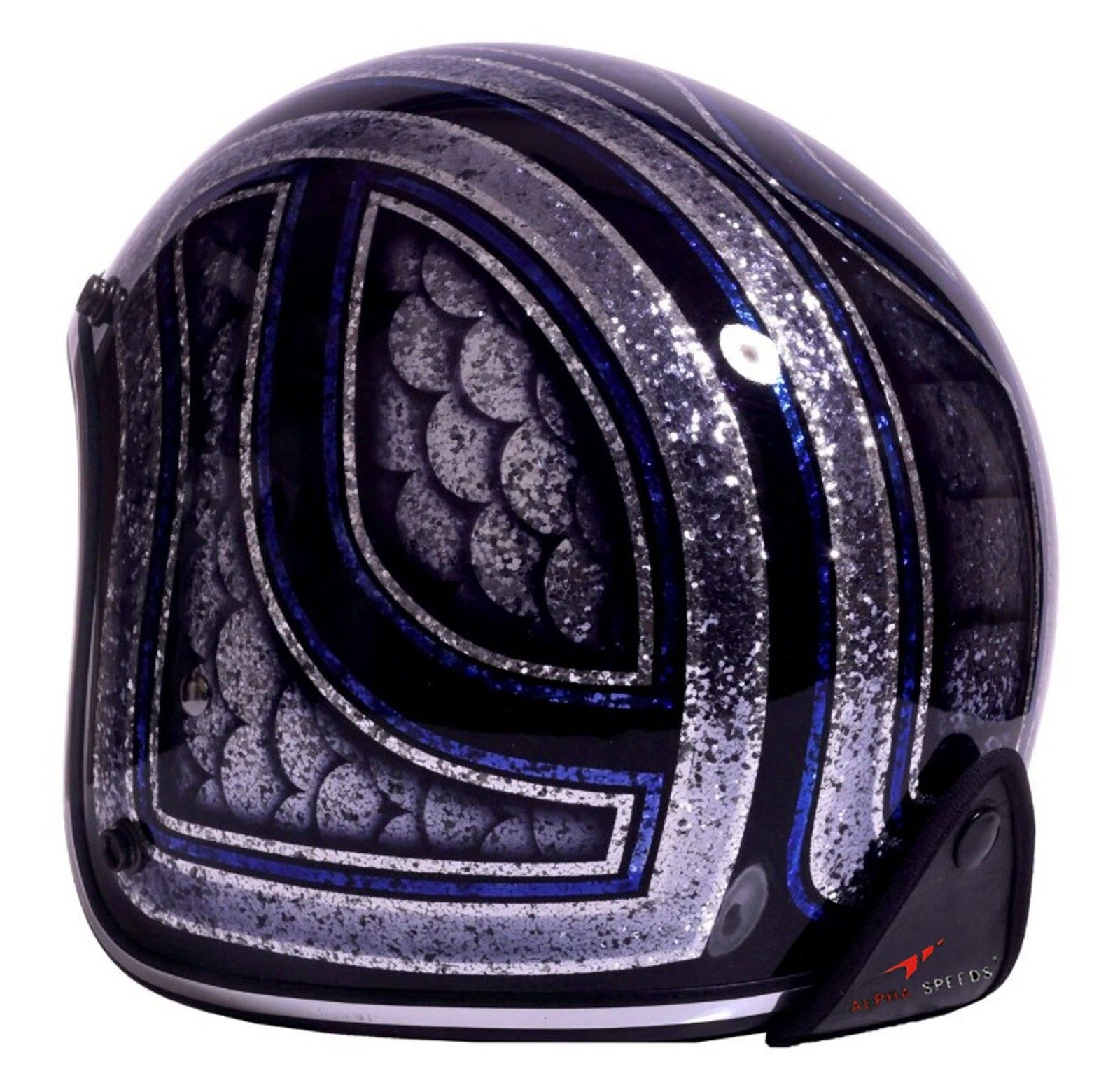 Alpha Speeds Super Flake Jet Helm Biker Chopper Motorrad Jethelm Custom Helme Blau