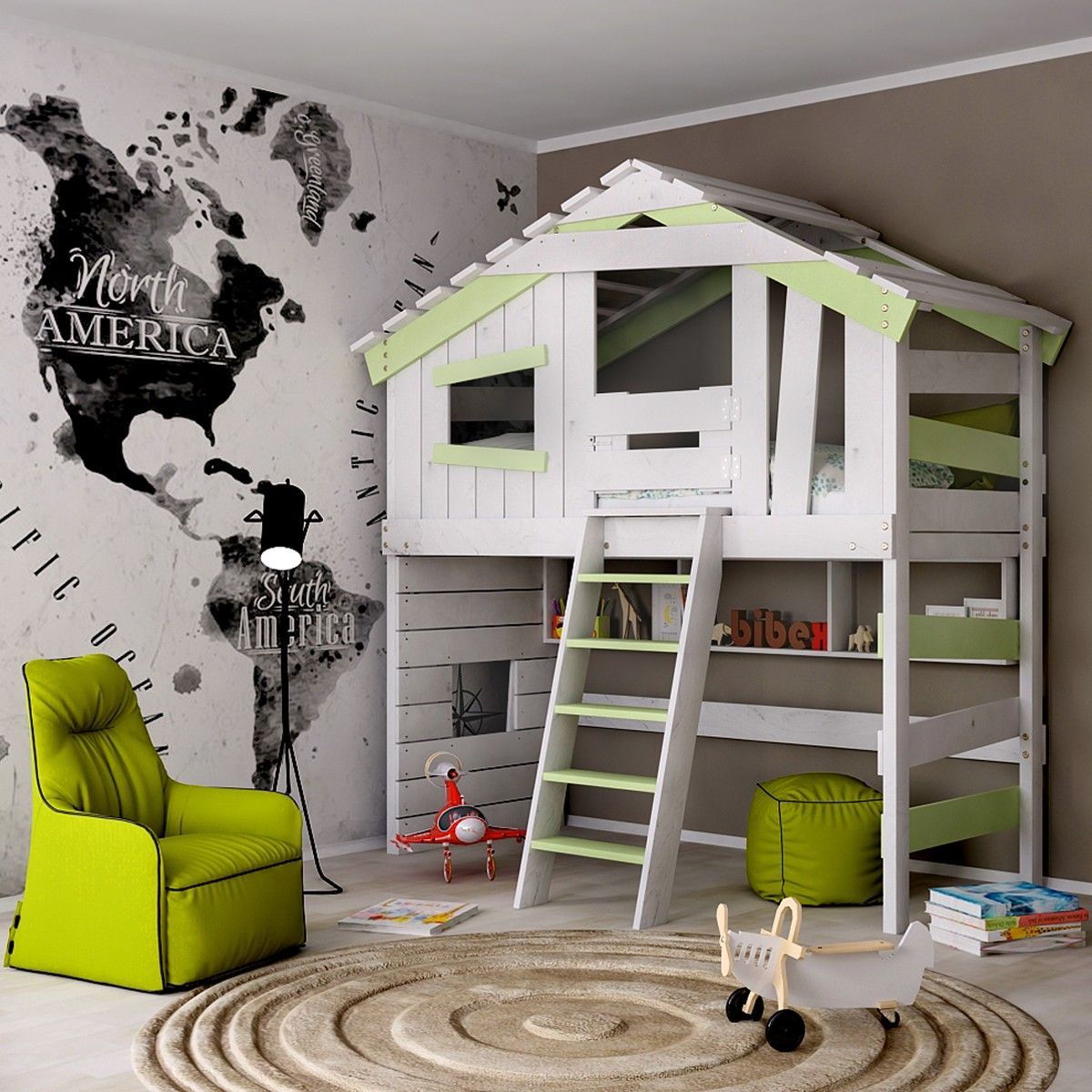ALPIN CHALET Jugend- Kinderbett, Hochbett, Doppelbett., Spielhaus