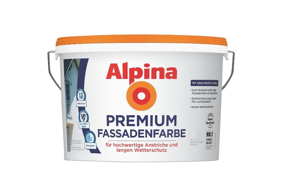 Alpina 10 L Premium Fassadenfarbe mit Aqua-Protect-Formel Anti-Schmutz Weiß Matt