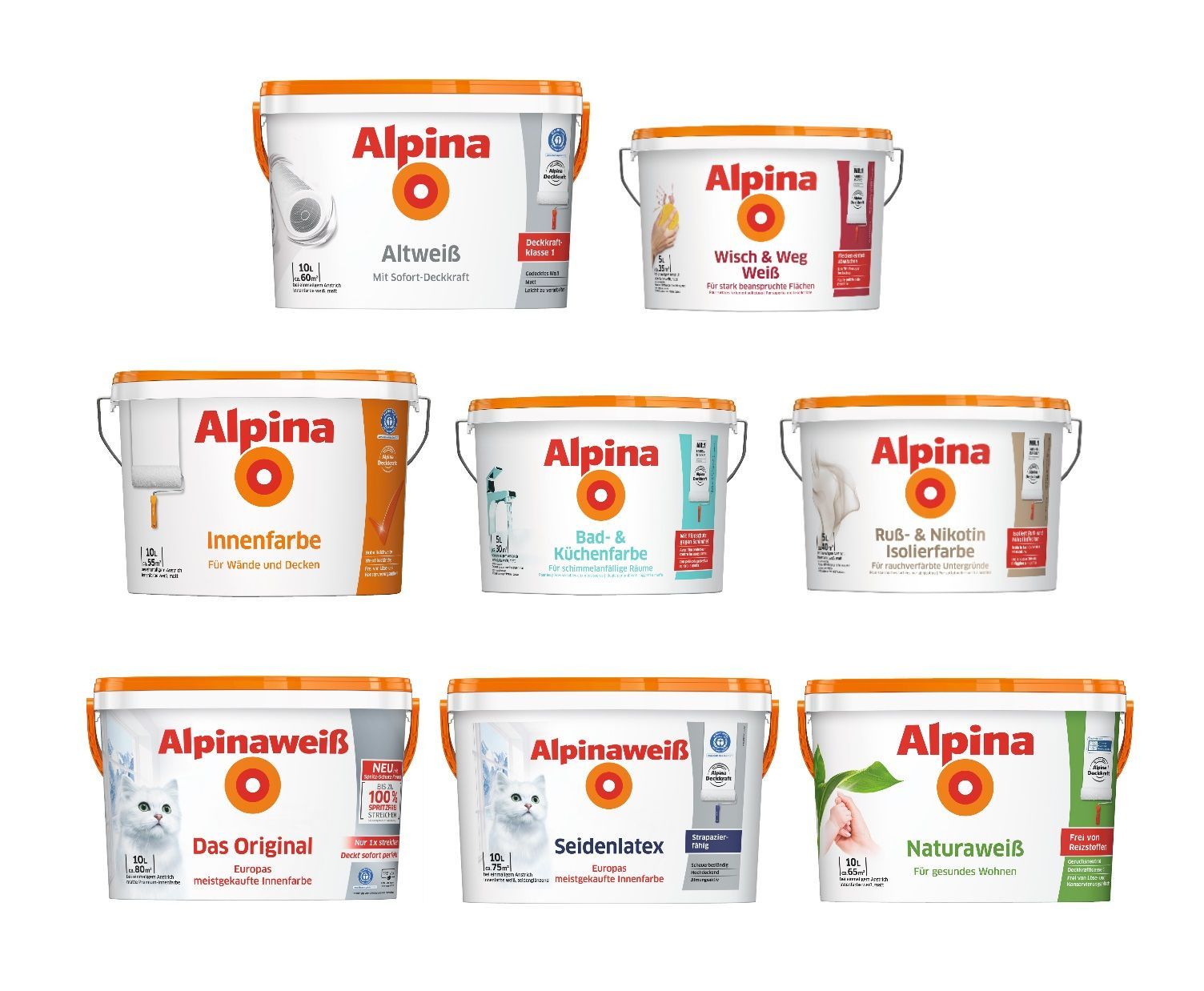 Alpina 5 L. oder 10 L. weiße Wandfarben für Innen, versch. Eigenschaften