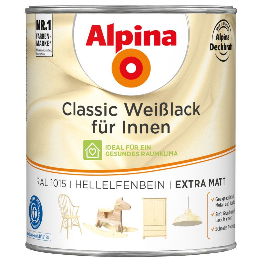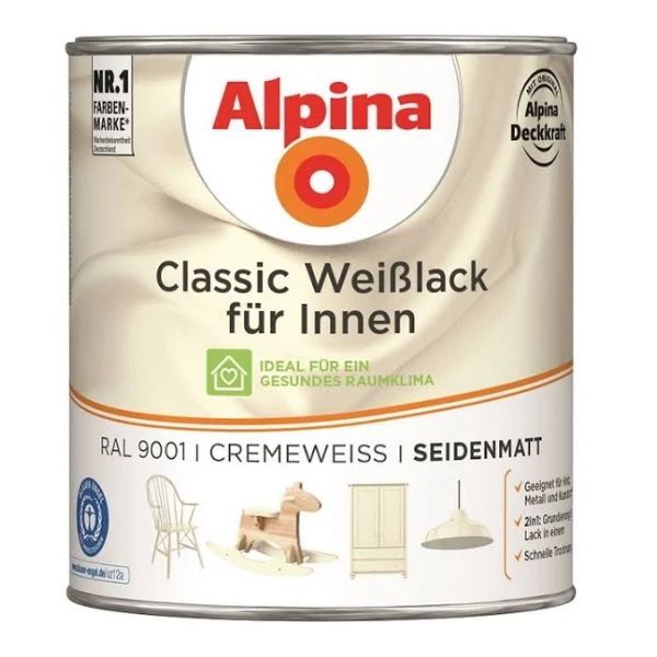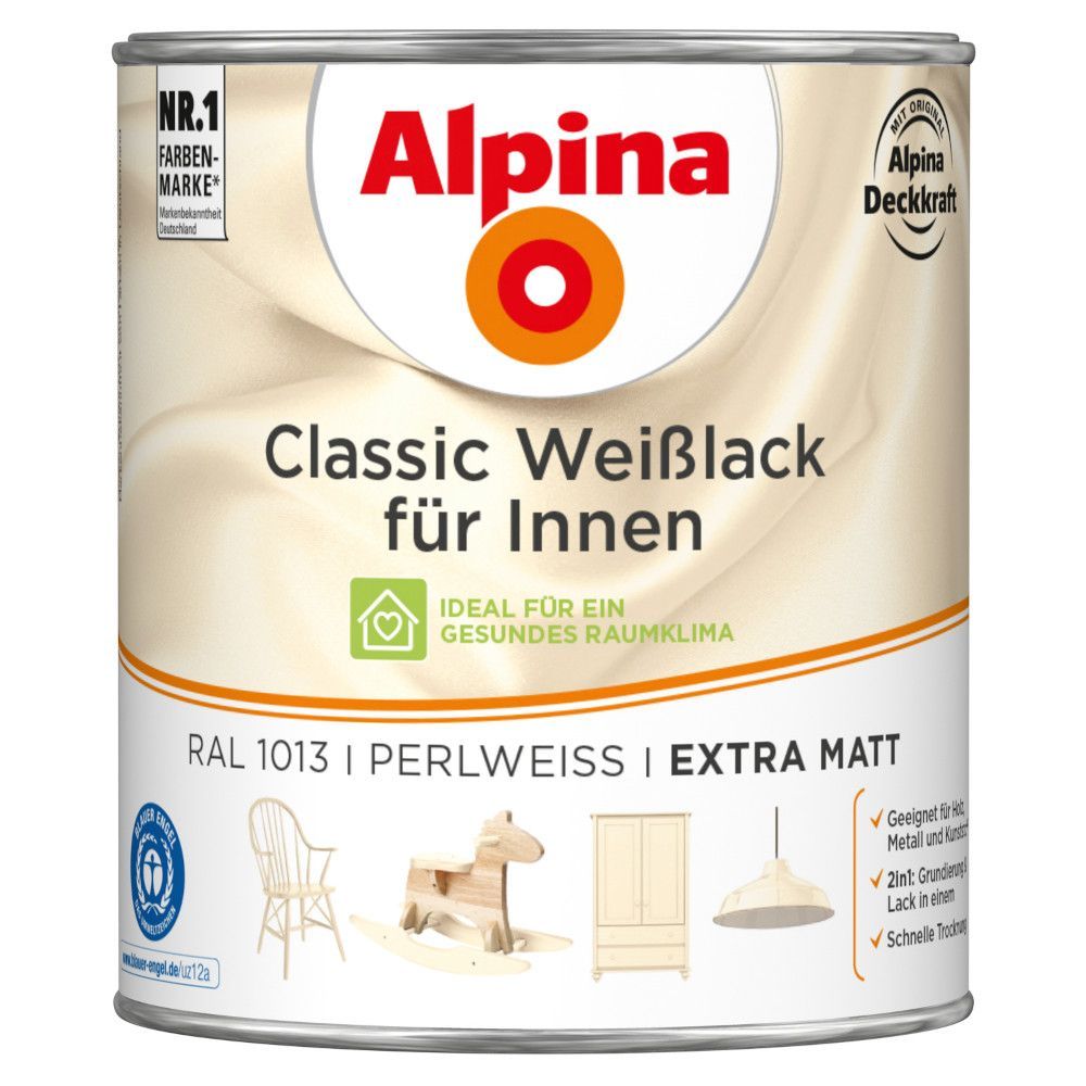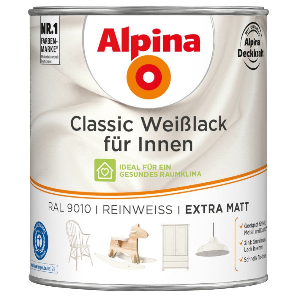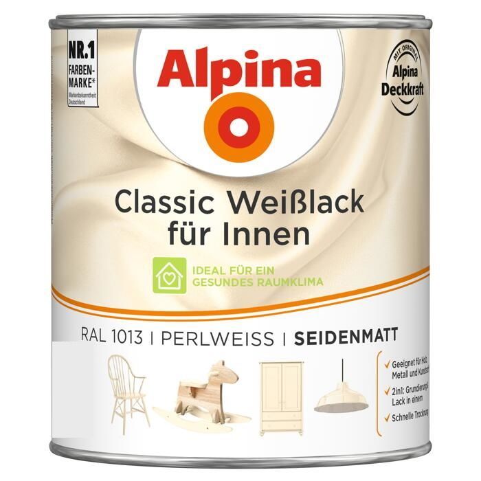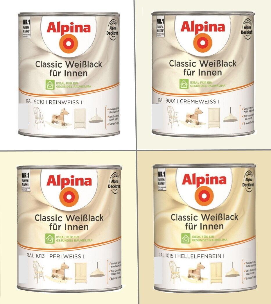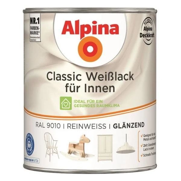 Alpina 750 ml Classic Weißlack Acryl-Lack für Holz Metall & Kunststoff, Farbwahl