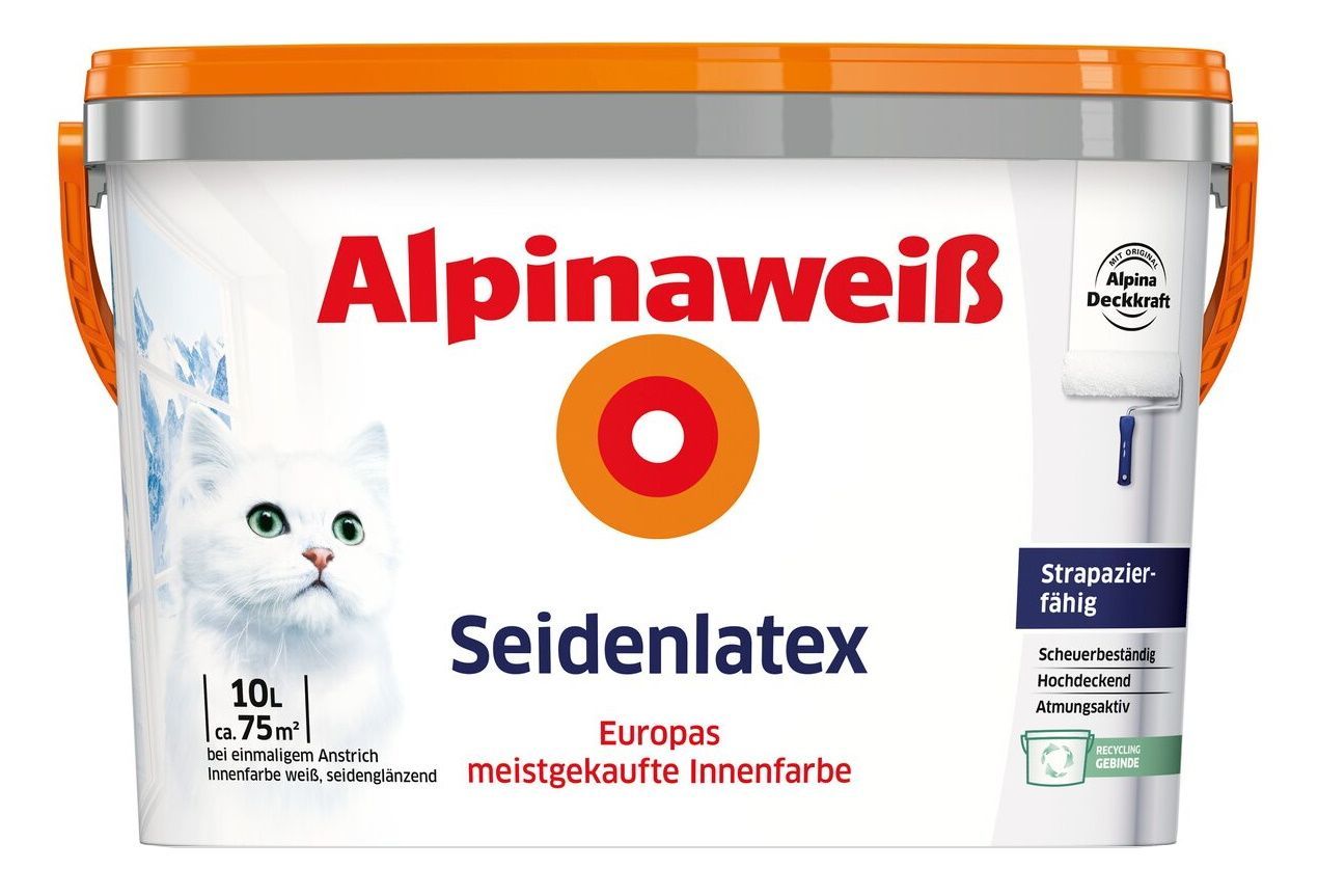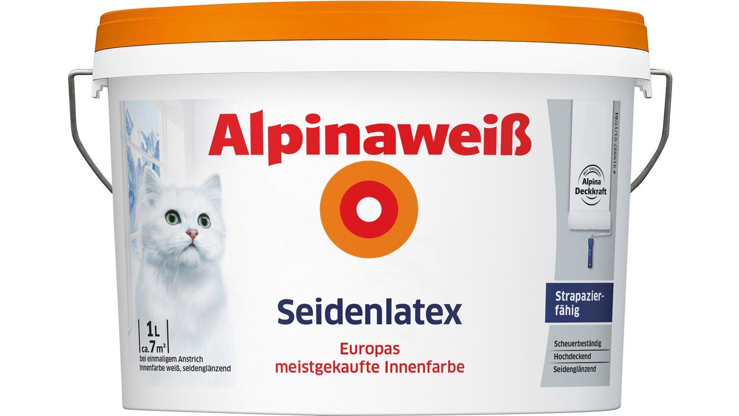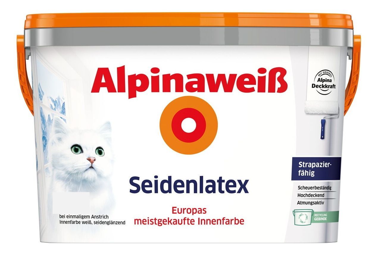 ALPINA Alpinaweiß Seidenlatex, Latexfarbe Wandfarbe Weiß Seidenglanz Größenwahl