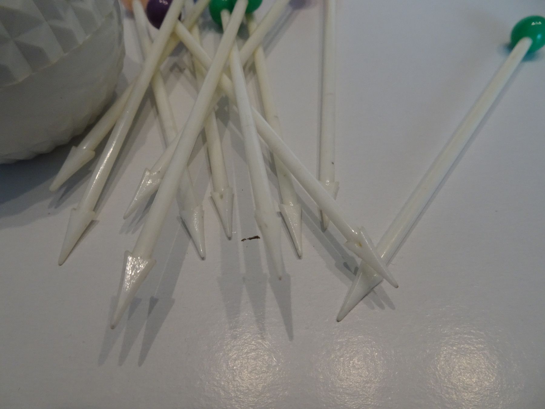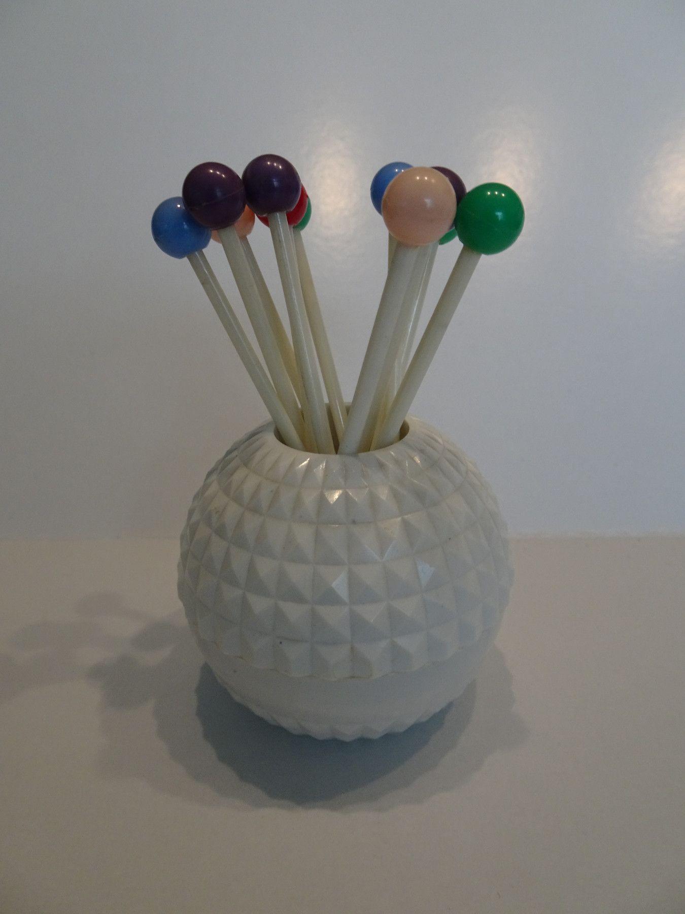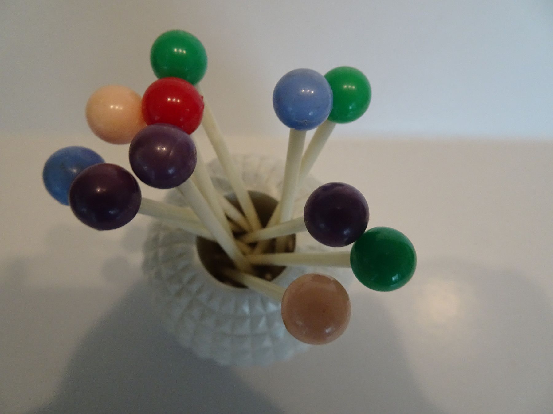 ALT: 11 Kugel - Cocktailspieße Käse Bowlenpieker weisser facetierter Kugel-Ständer