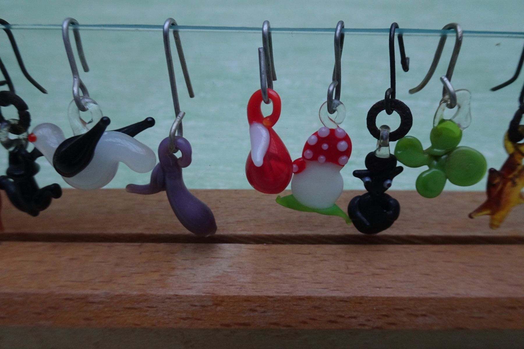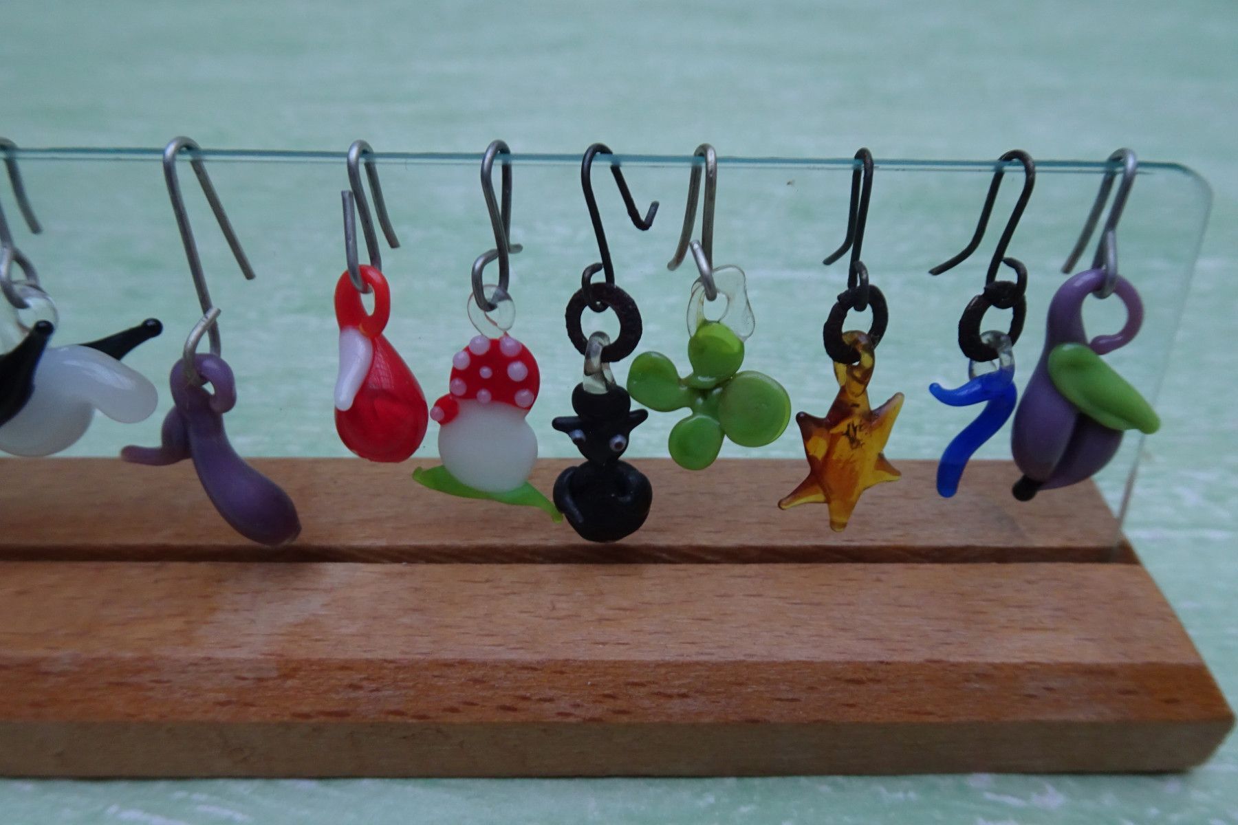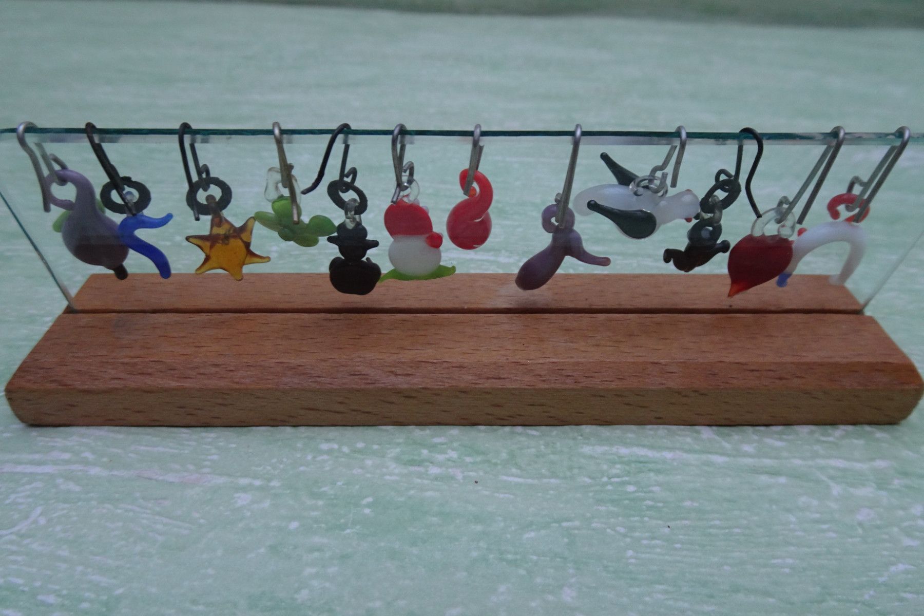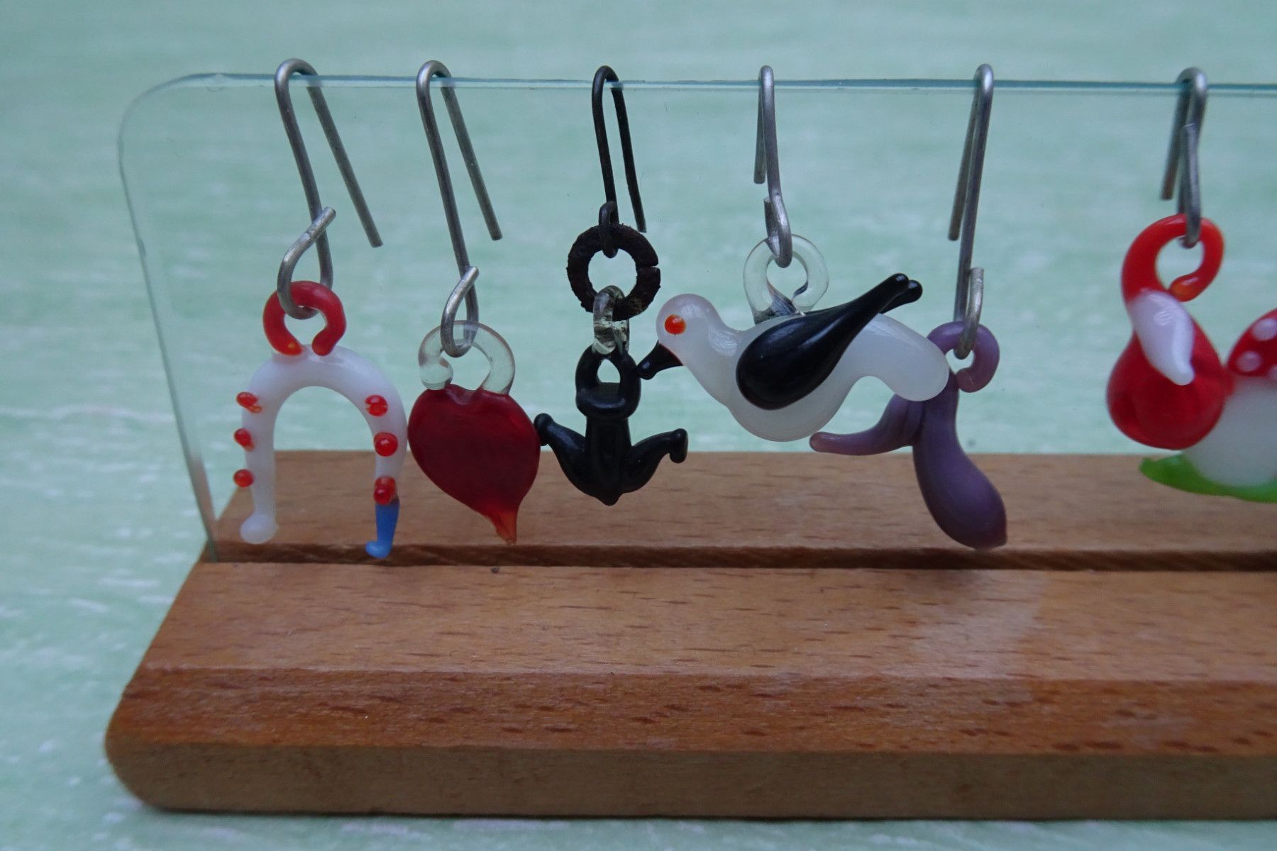 ALT: Bowle Cocktail 12 Glasmerker aus Glas RuRa Ständer & Karton Hufeisen Anker Vogel
