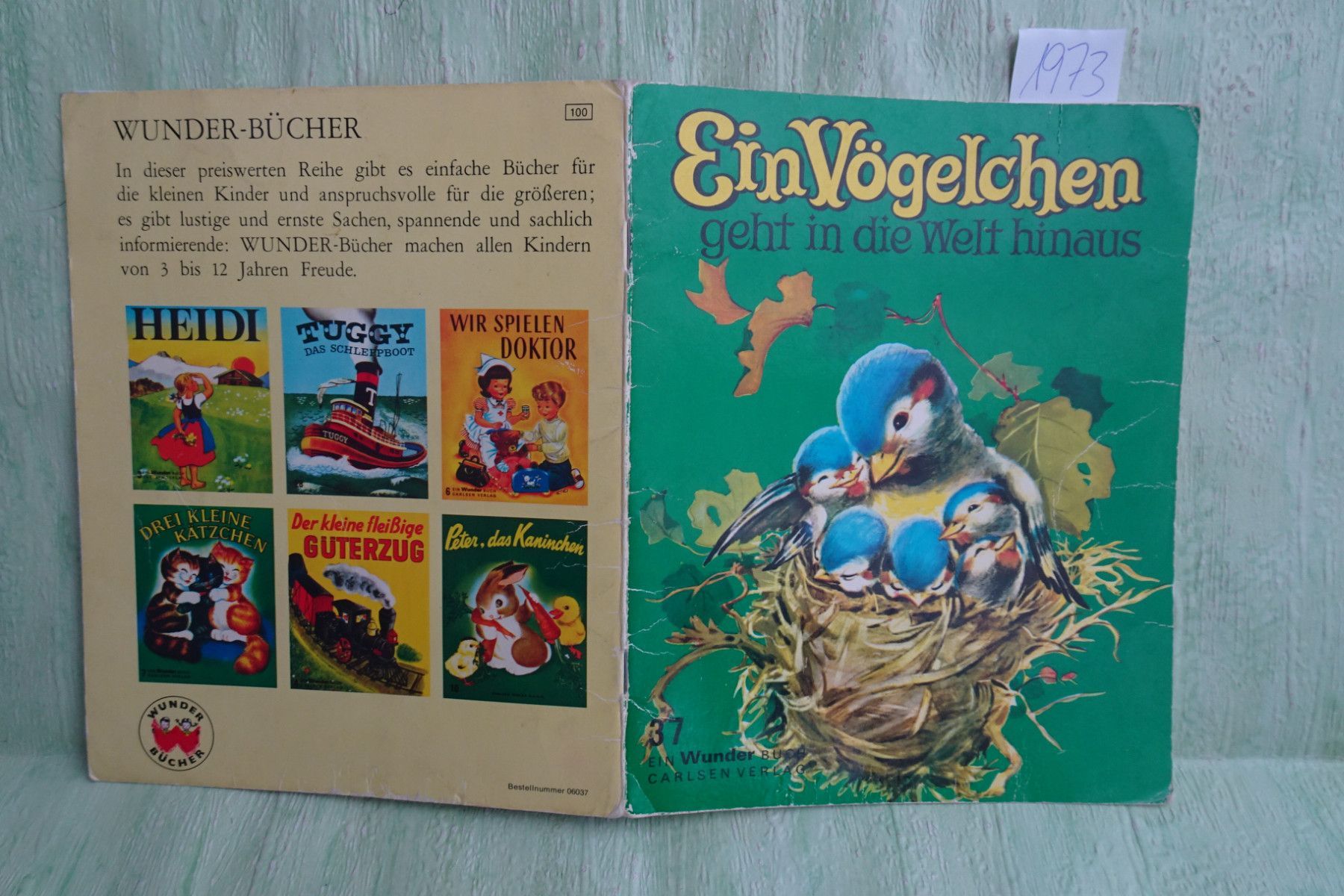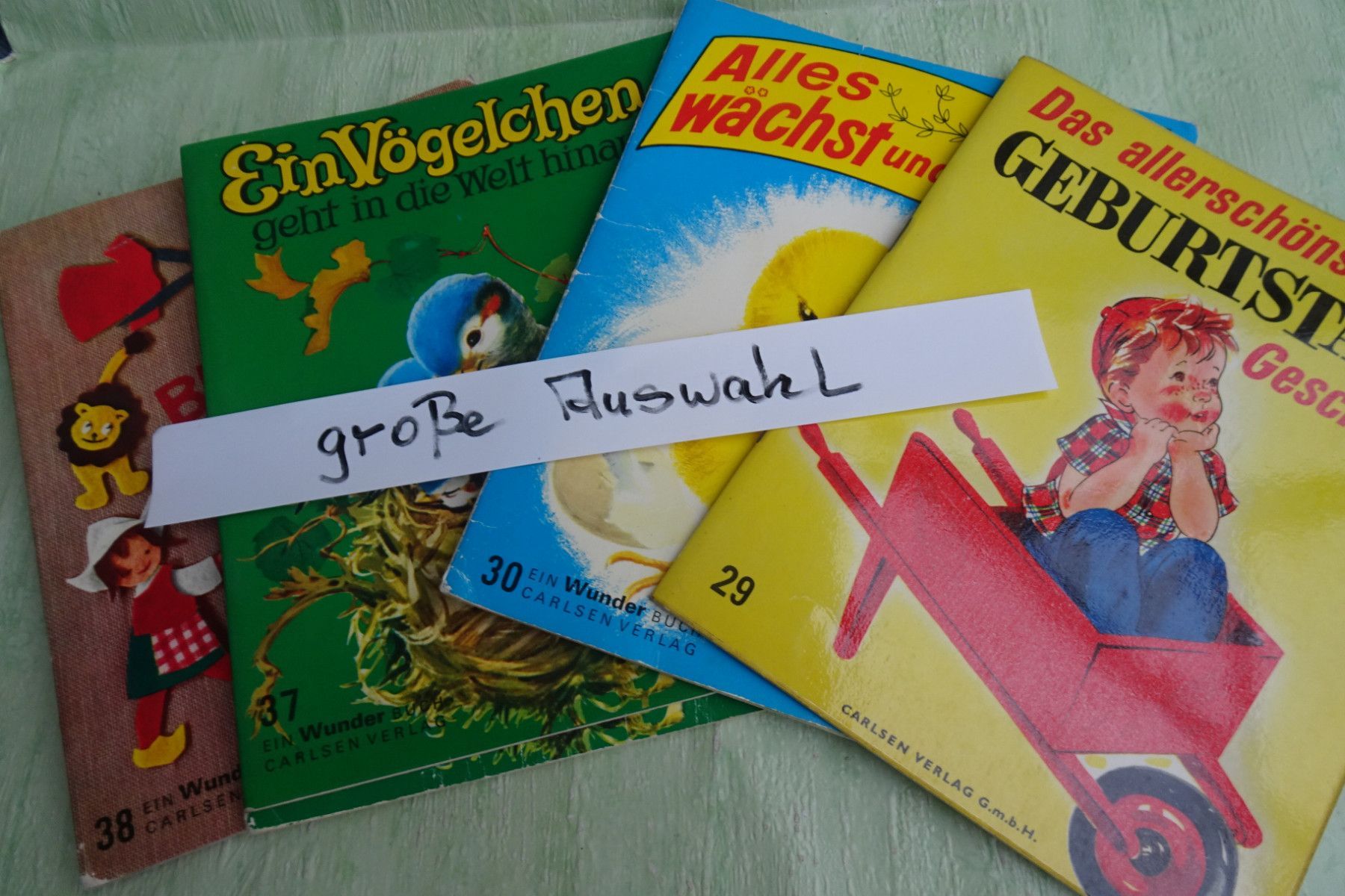 Bilderbücher - Kinderbücher ... Erinnerungen ..... Carlsen Verlag, Reinbek bei Hamburg Wunder-Buch Bilderbücher zum Vorlesen und Selbstlesen Auswahl: Nr 29: Alles wächst und blüht 5. Auflage 1973 Cover mit Knickspuren, ansonsten gut+ Nr 37: Ein Vögelchen geht hinaus in die Welt 4. Auflage 1979 Zusta